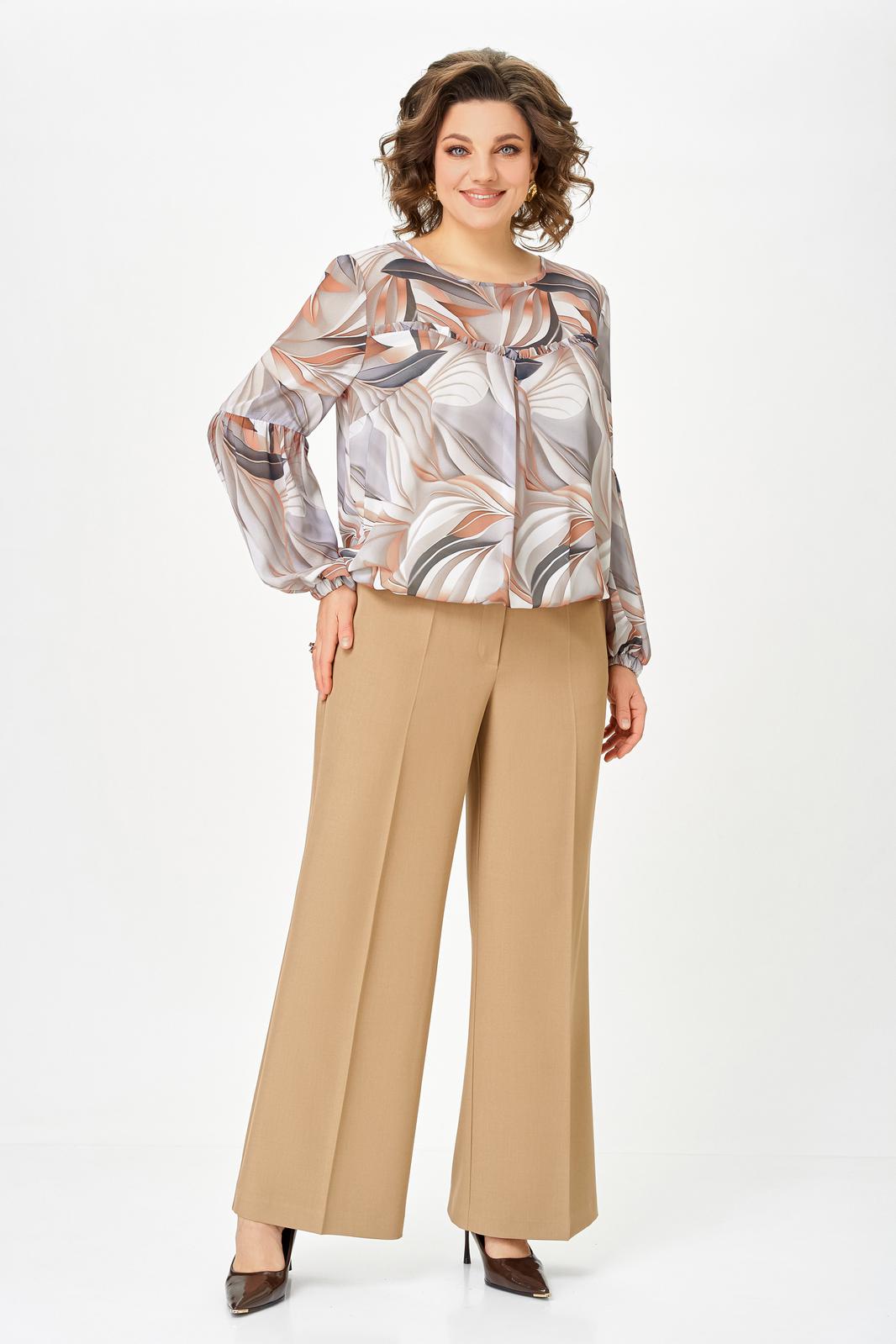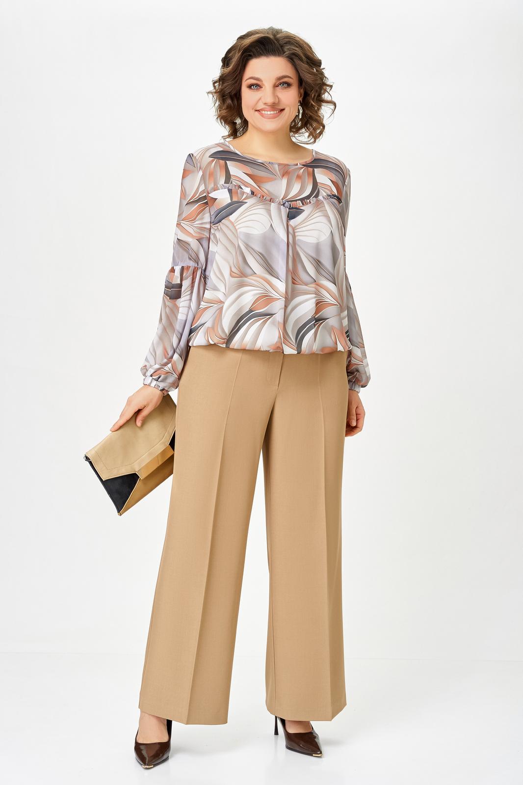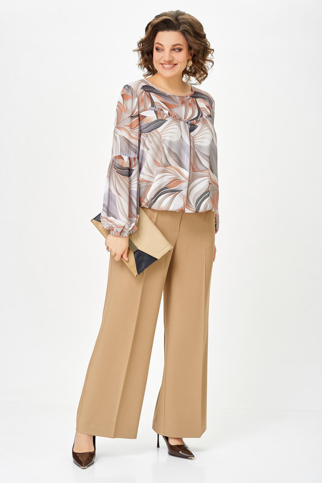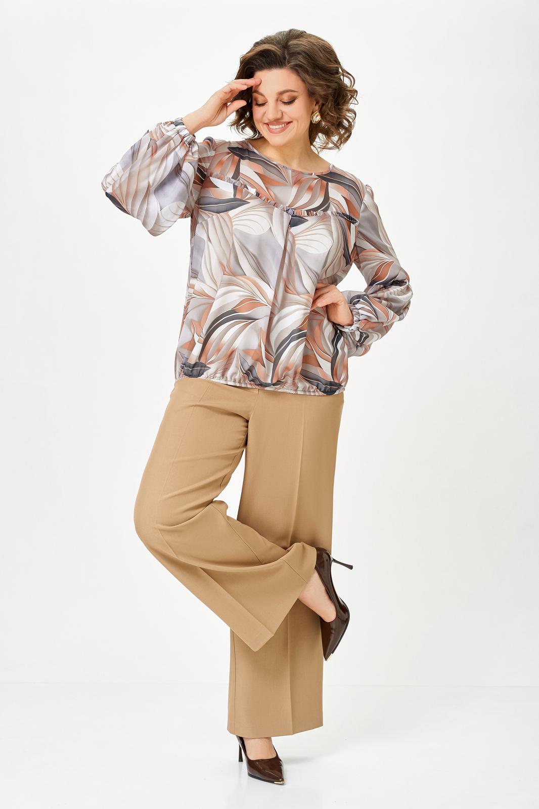 - Модель 904.1 цвет-Бежевый принт зелено-коричневые листья Swallow