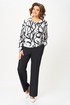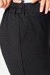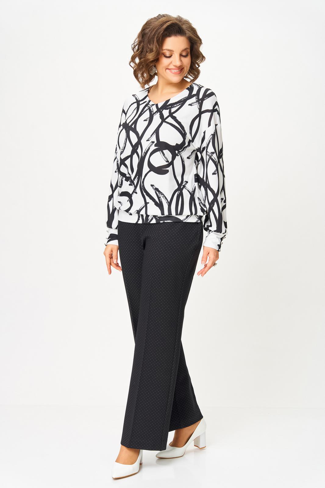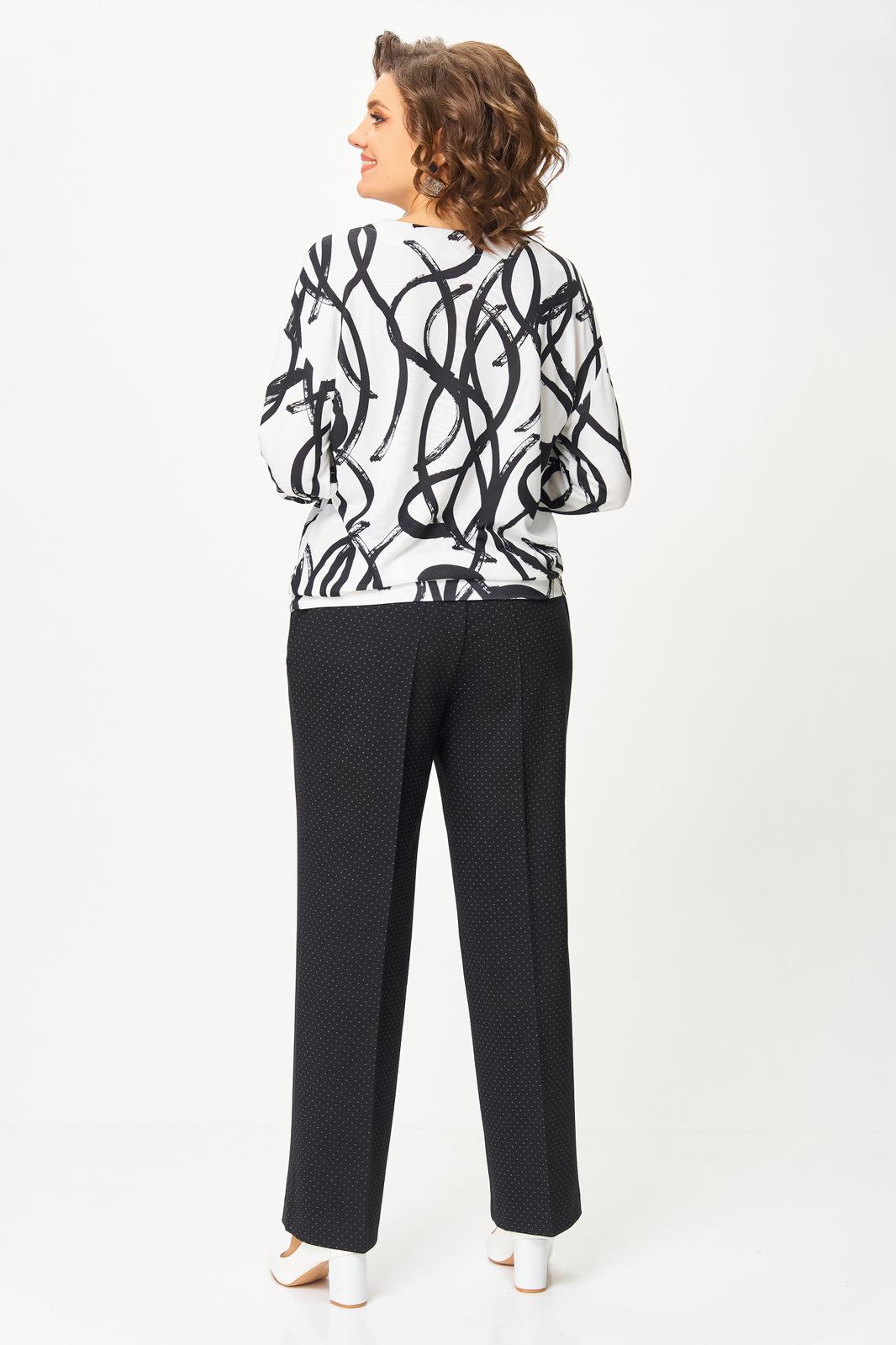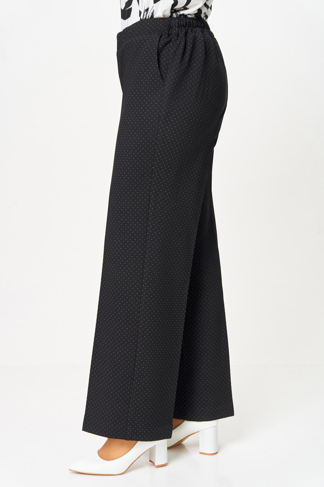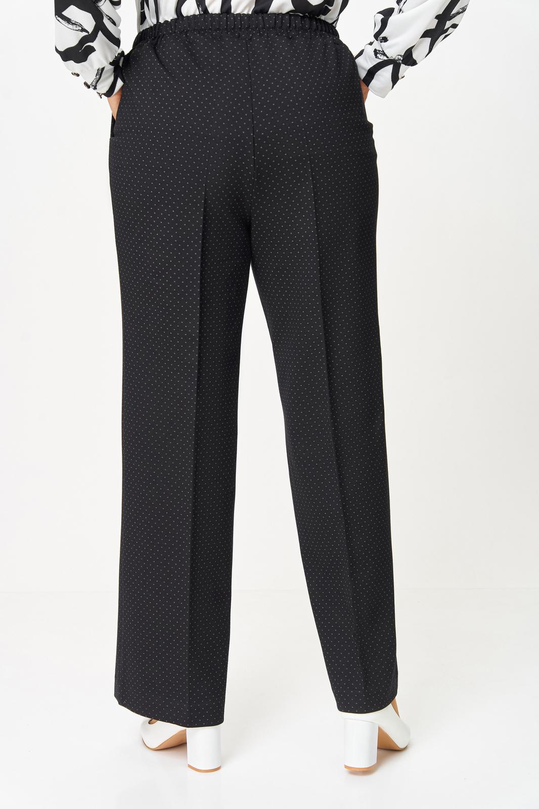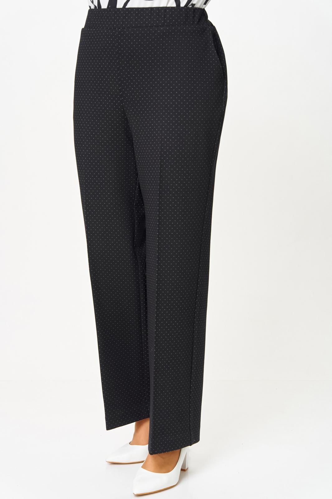 Брюки женские из эластичного трикотажного полотна, прямого от бедра кроя. По передним половинкам брюк расположены фигурные карманы. По передним и задним половинкам заутюжнены канты. Пояс брюк притачной, с эластичной тесьмой-резинкой.