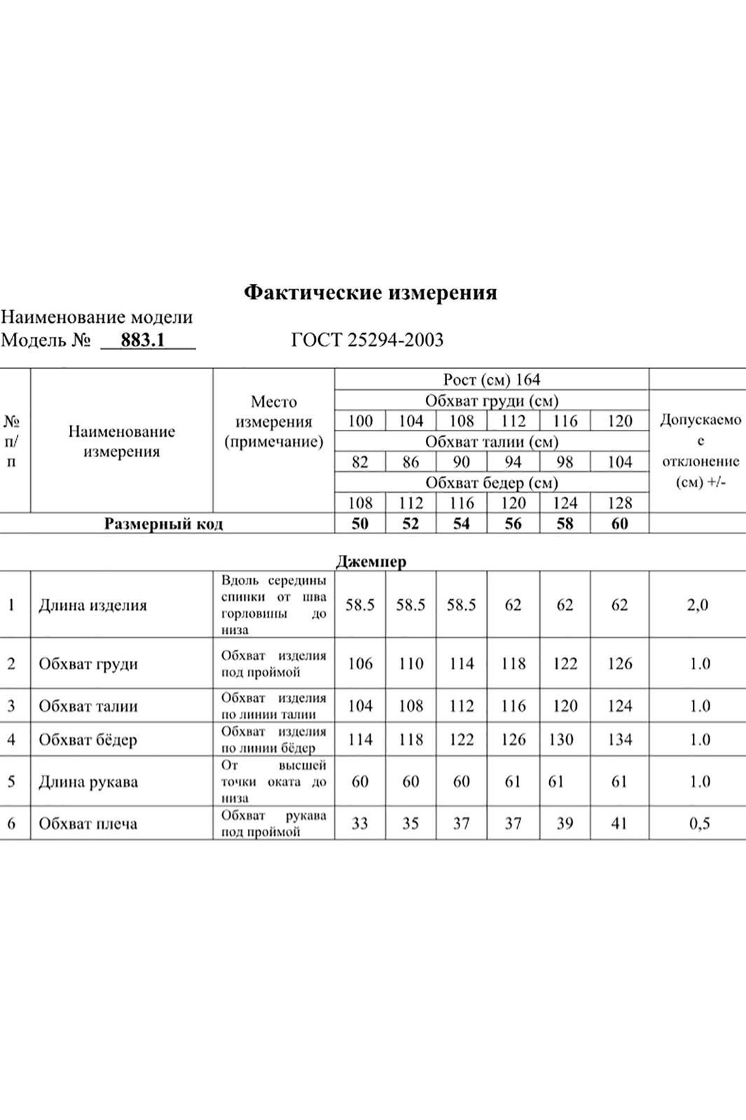 Джемпер из мягкого вискозного трикотажного полотна прямого силуэта, слегка расширен к низу. Перед и спинка цельные, в боковых швах разрезы длиной 11 см.