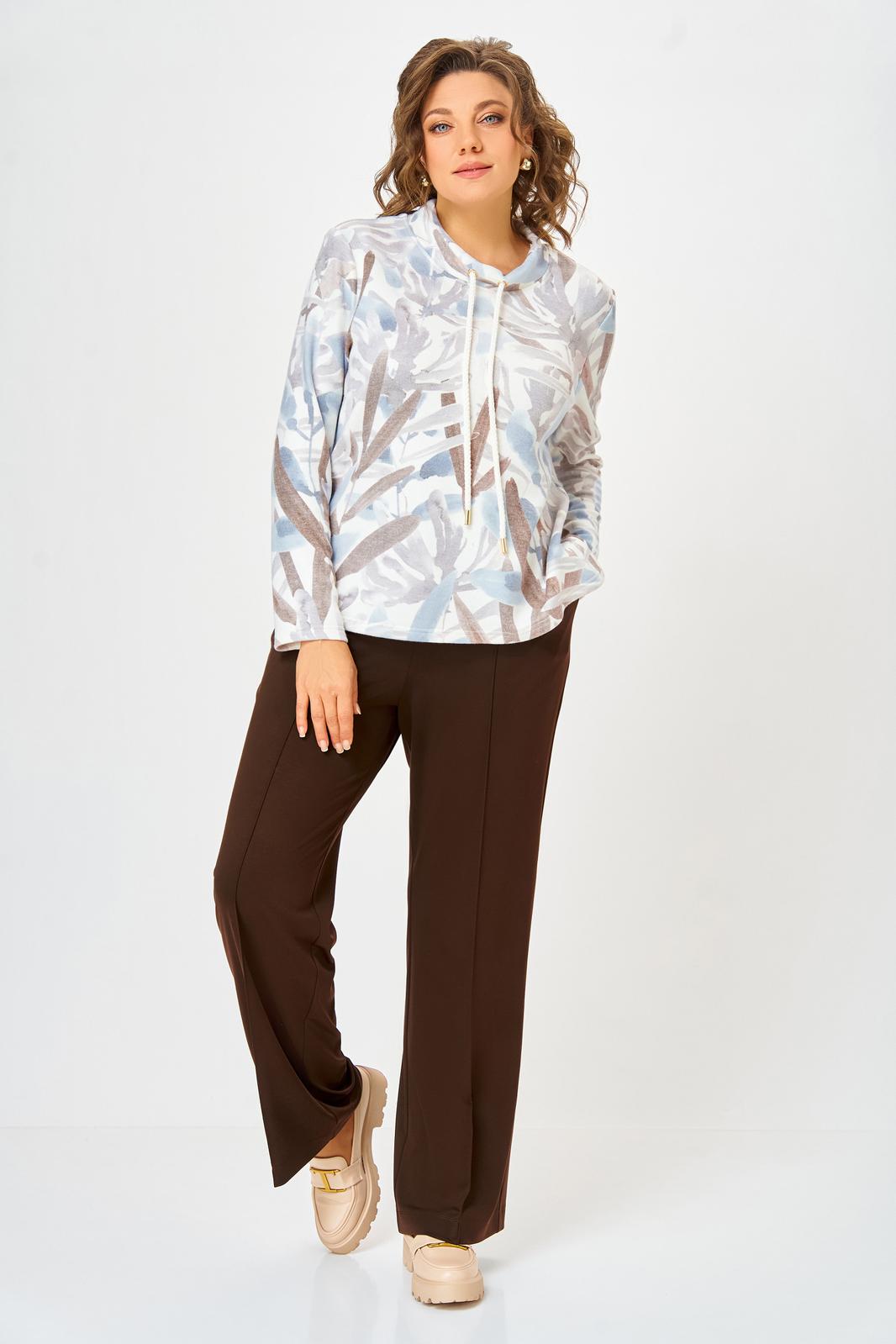 - Модель 883.1 молочный, принт «бежево-голубые тропические листья» Swallow
