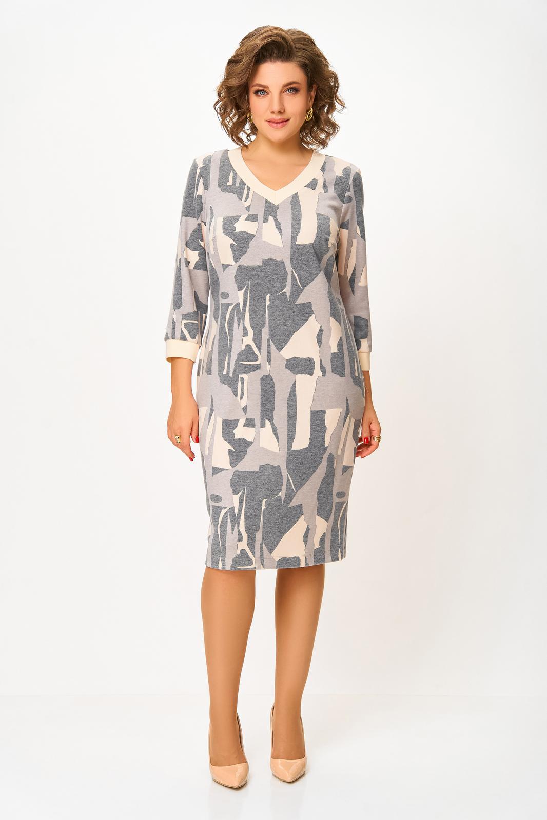 Платье из эластичного трикотажного полотна полуприлегающего силуэта.По переду обработаны нагрудные