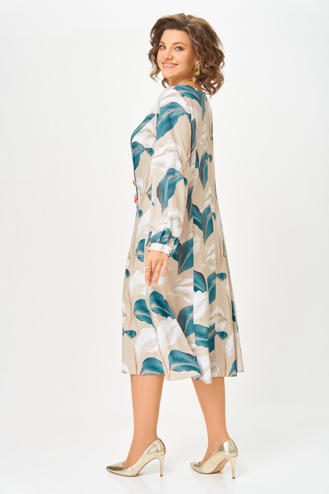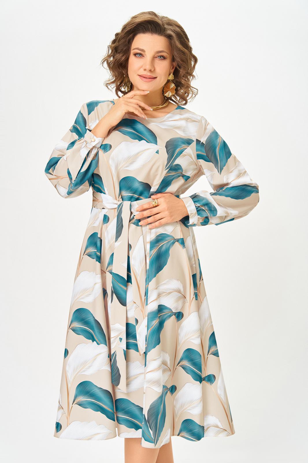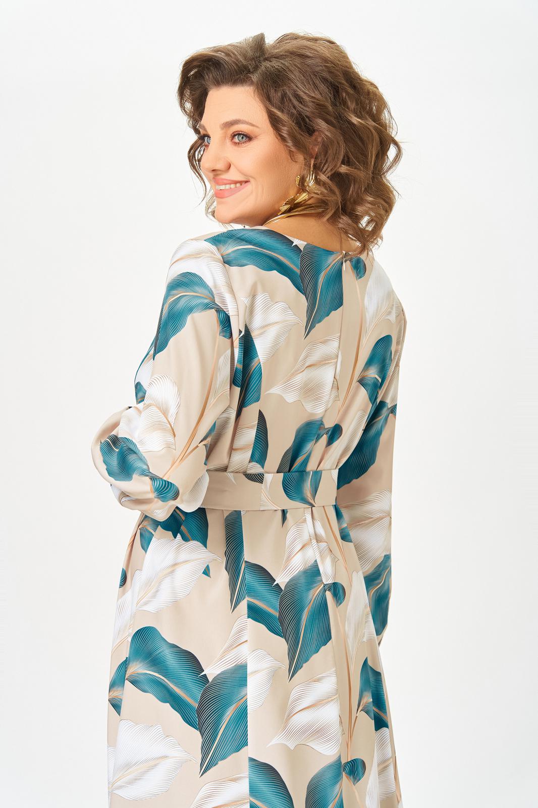 - Модель 885.2 бежевый принт «ярко-голубые и белые листья» Swallow