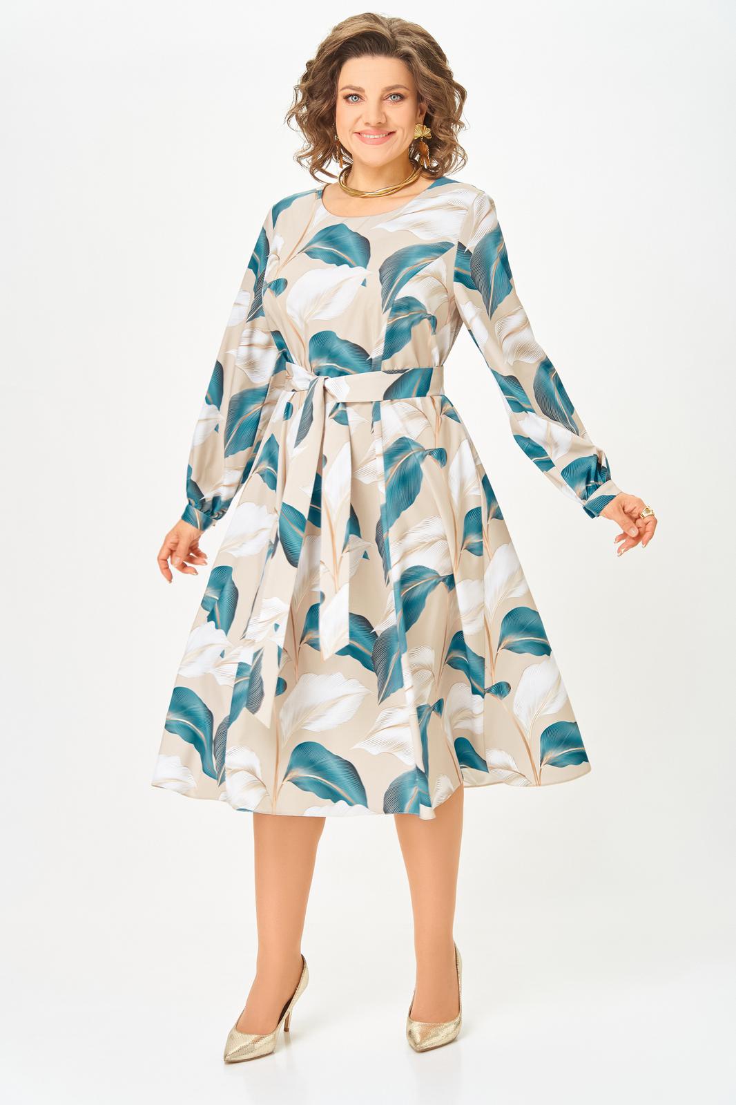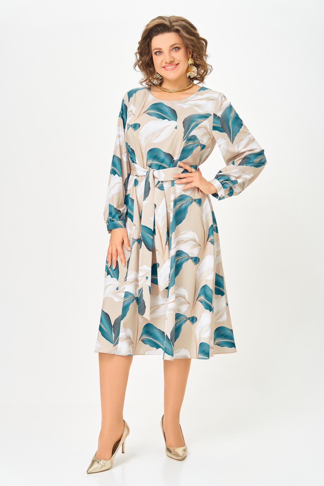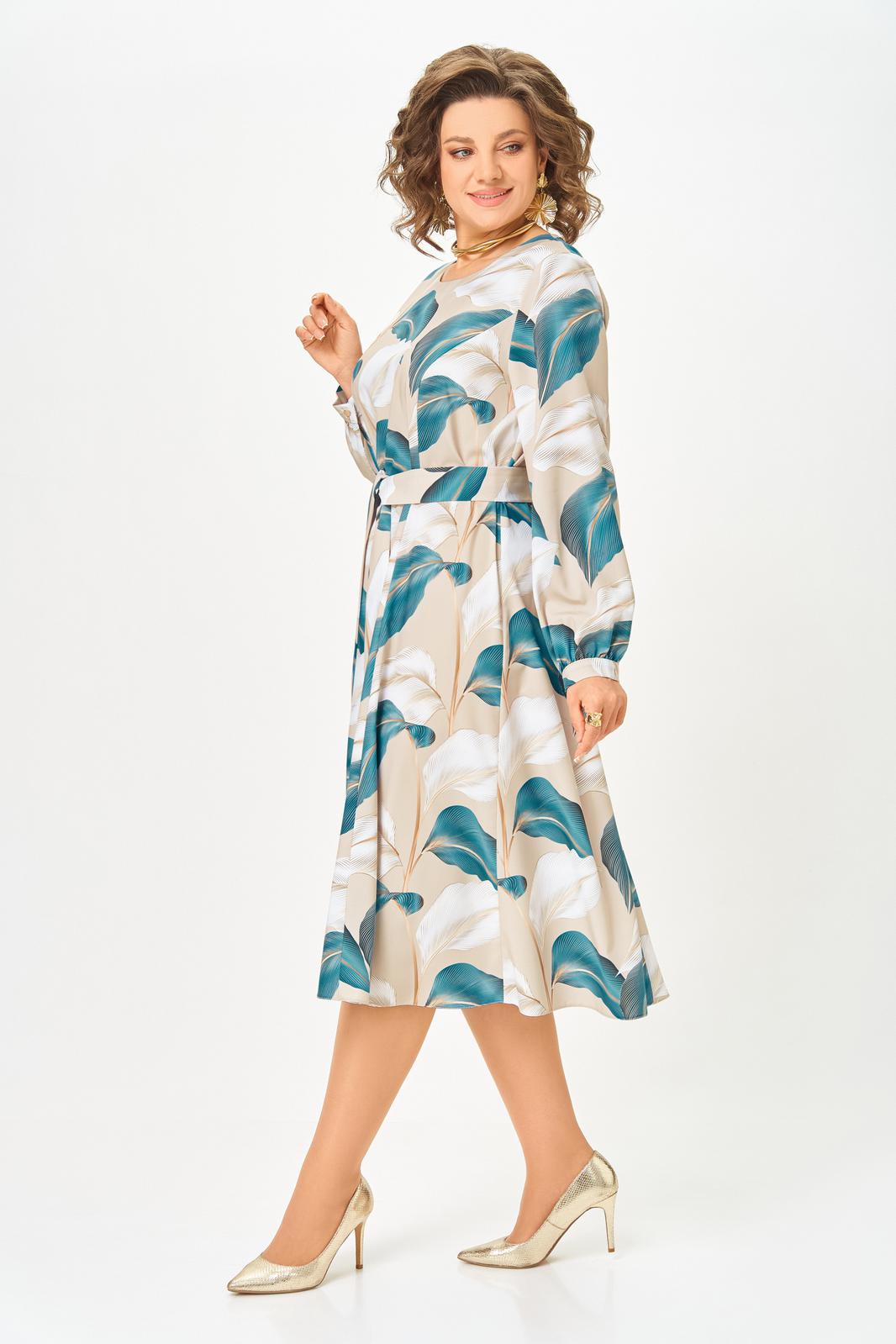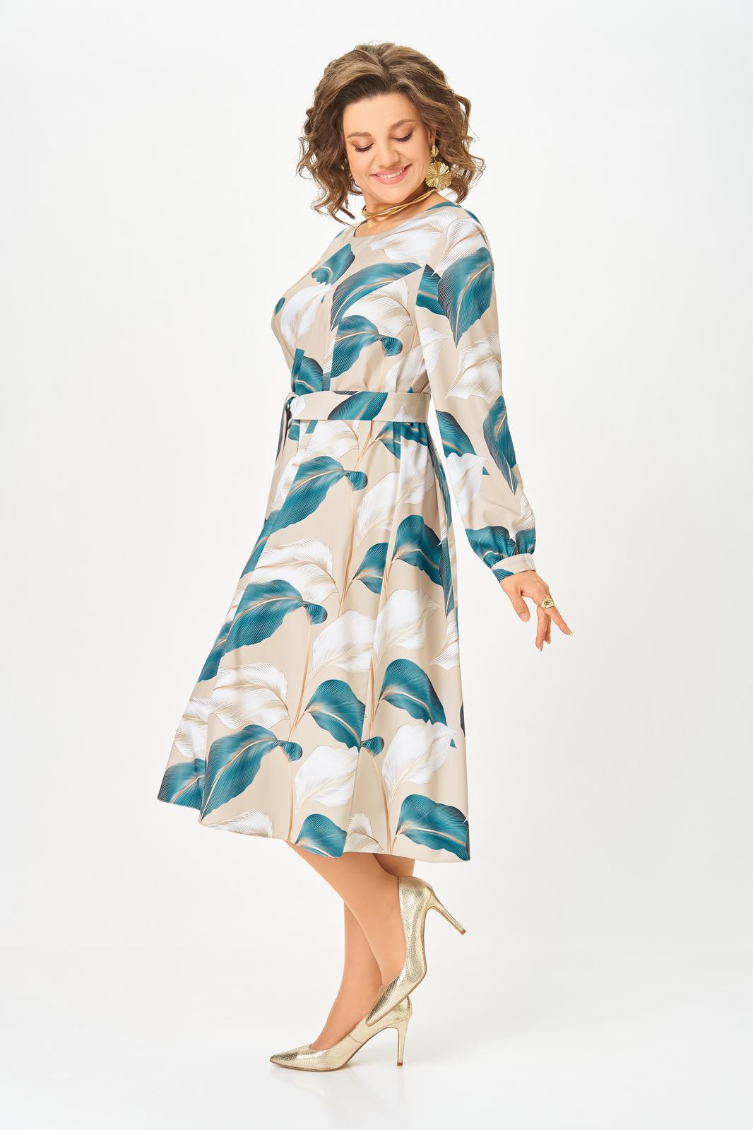 - Модель 885.2 бежевый принт «ярко-голубые и белые листья» Swallow