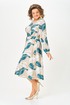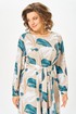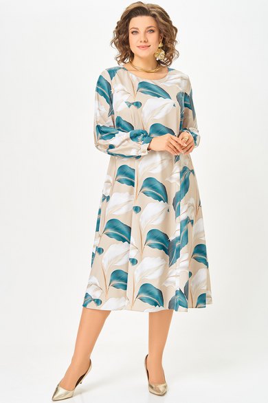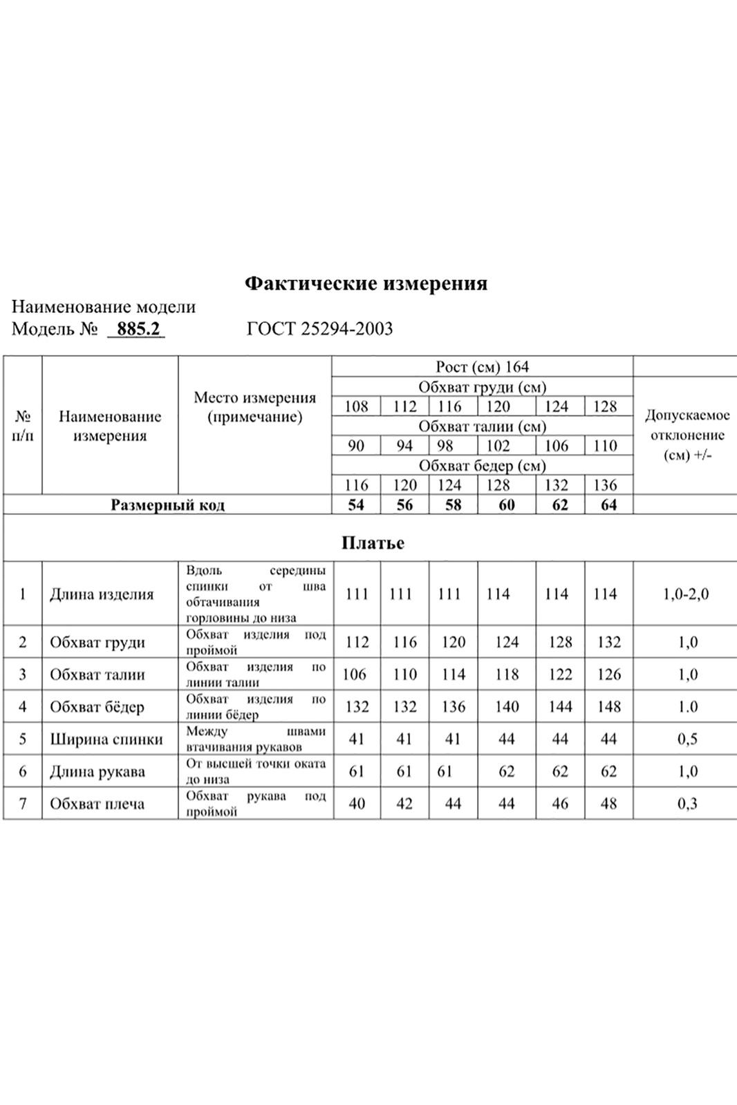 Платье полуприлегающего силуэта из мягкой вискозной ткани. Полочка с отрезными рельефами, спинка с центральным швом и рельефами. Горловина округлой формы. Рукав втачной, длинный внизу со сборкой и манжетой, которая застёгивается на петлю и декоративную пуговицу.