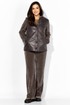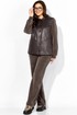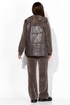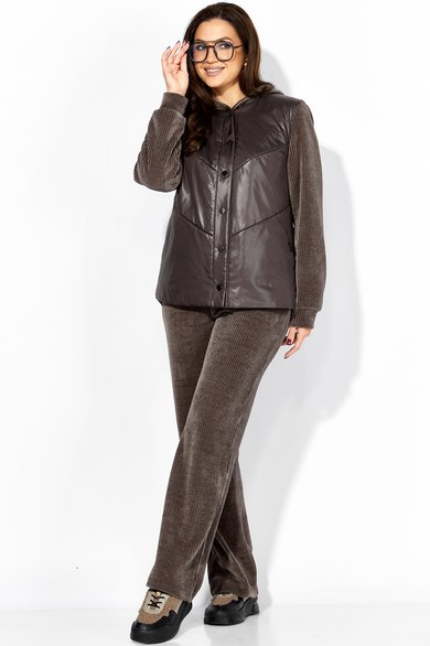 Комплект женский, 2х предметный, состоящий из куртки и брюк, выполнен из двух видов ткани-плащевка на синтепоне и вельвет на трикотажной основе. Куртка прямого силуэта. По переду наклонные рельефы и функциональные карманы. Застежка центральная, с отрезной планкой на кнопки. Рукав длинный, втачной с манжетой по кругу. Горловина оформлена манжетой по низу. Горловина оформлена капюшоном. Спинка с широкой стежкой, чуть удлиненная по низу. Перед спинки на подкладке.
