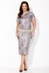 Комплект женский, 2х предметный, состоящий из блузы и юбки. Блуза прямого силуэта, с коротким цельнокройным рукавом, снизу на манжете. Вырез горловины круглой формы. По низу рукавов и горловине подрезные бейки. Юбка прямая. Сзади средний шов и подрез снизу. Пояс на резинке(по переду отрезной, по спинке цельнокройный) Перед блузы и юбки выполнен из полотна с паетками, спинка блузы и юбки из гладкого трикотажного полотна. По переду блузы и юбки трикотажноя подкладка.