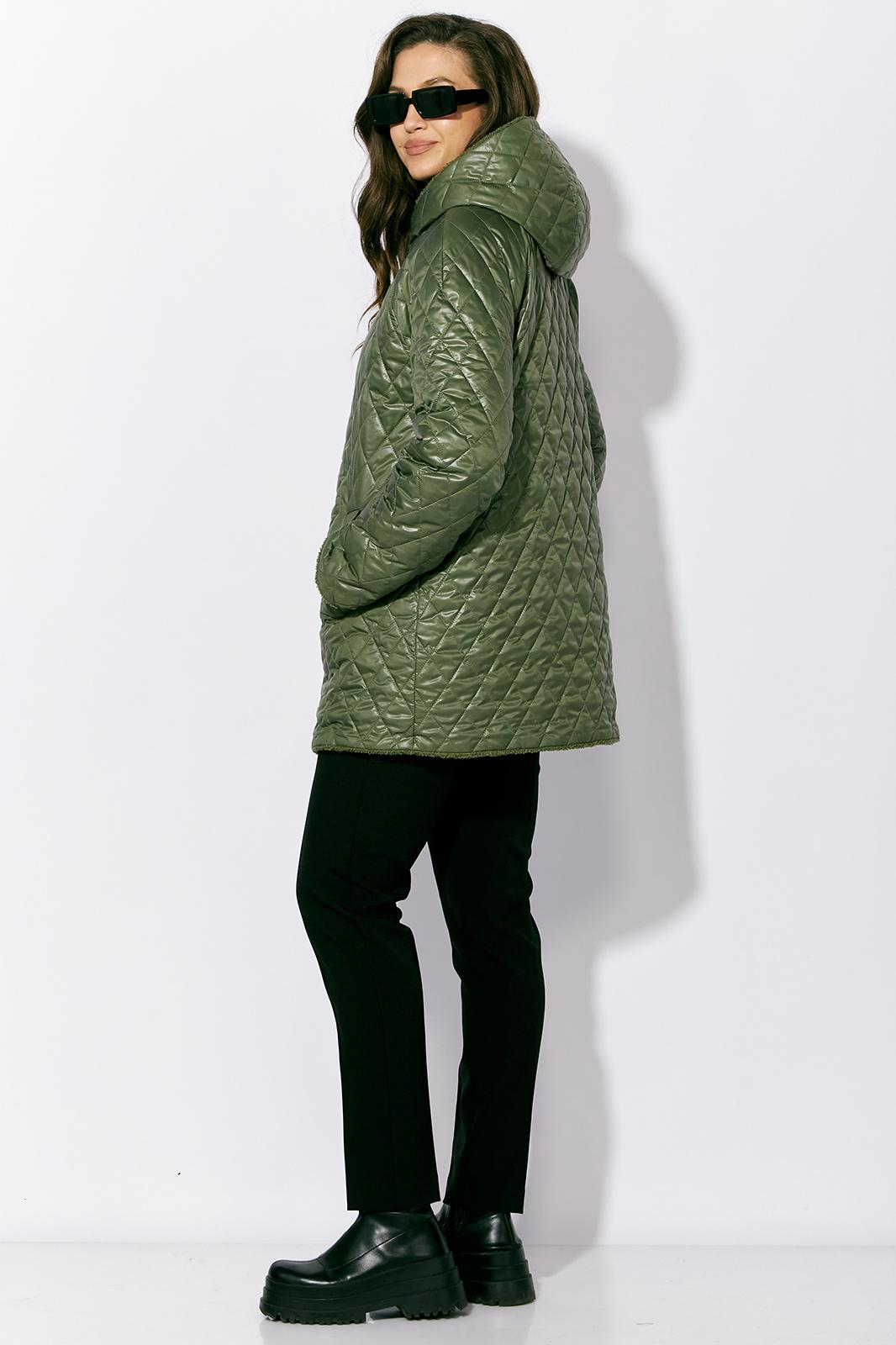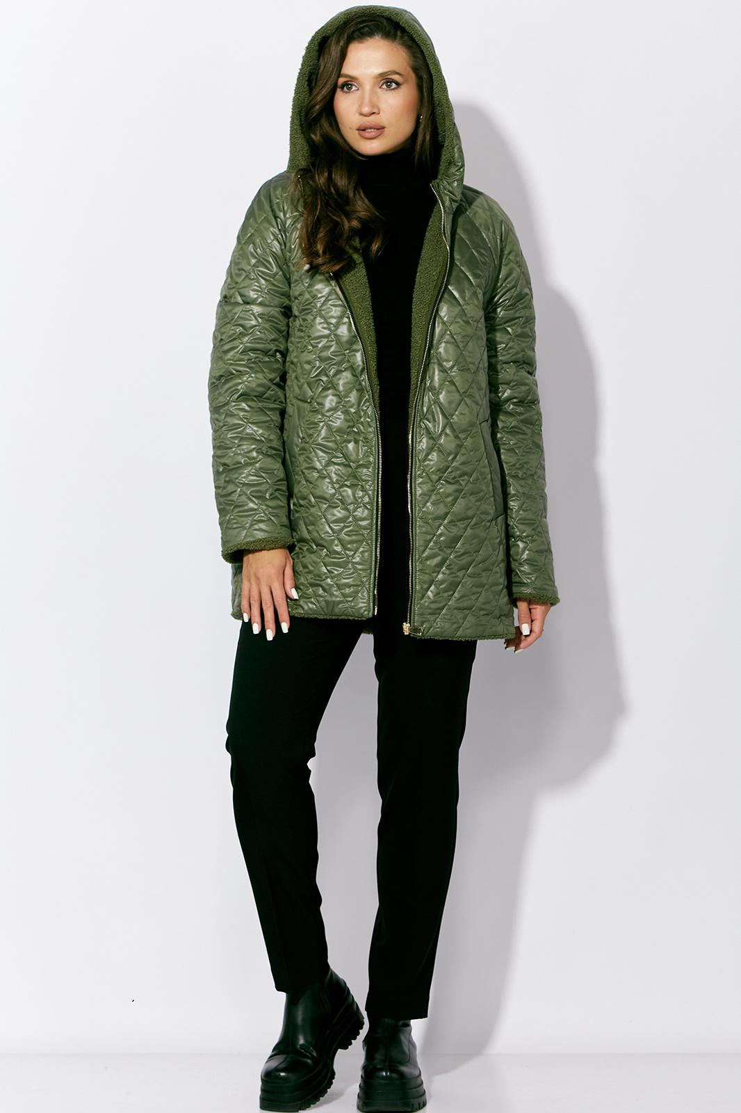 Куртка женская, демисезонная. Верх куртки - плащевка, стеганная на синтепоне. Подкладка - экомех барашек. Куртка прямого силуэта с длинным рукавом реглан. Длина рукава может регулироваться отворотом. По переду центральная застежка на молнию и прорезные, функциональные карманы. Горловина оформлена капюшоном-стойкой по переду.