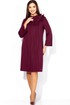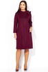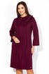 Платье женское, чуть А-силуэта, с втачным рукавом, длинной 7/8. По центу переда объемные , фигурные рельефы. Горловина оформлена небольшой мягкой стойкой. Декором служат съемные цветки-броши. По низу платья отделочная нашивка. Спинка со средним швом. Платье изготовлено из трикотажного полотна тенсел.
