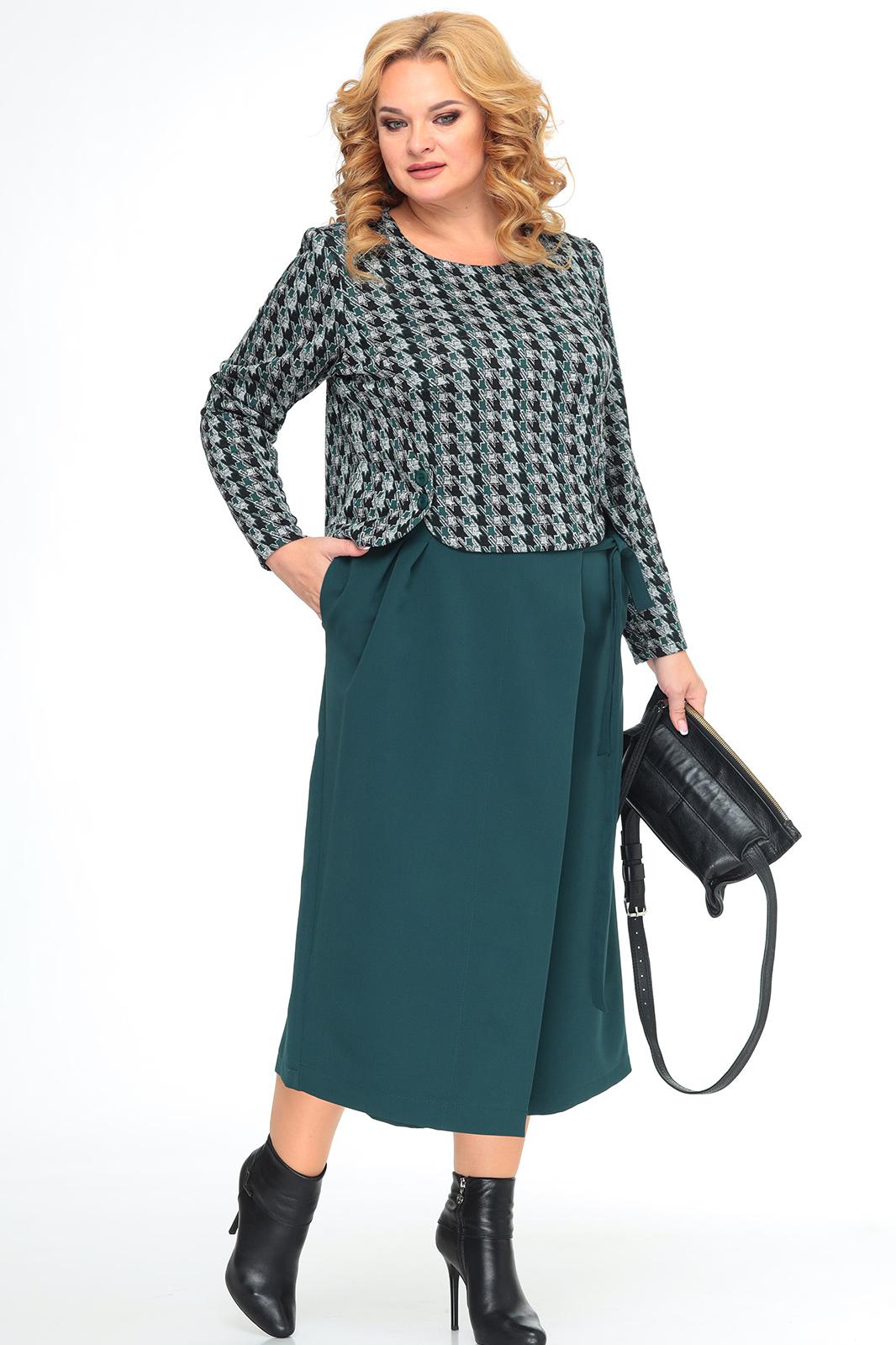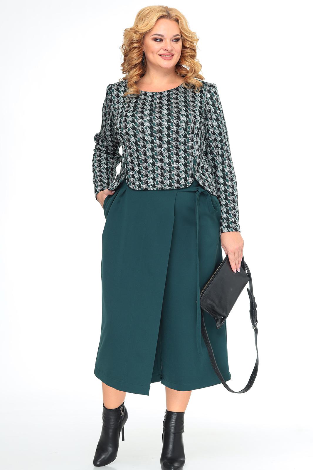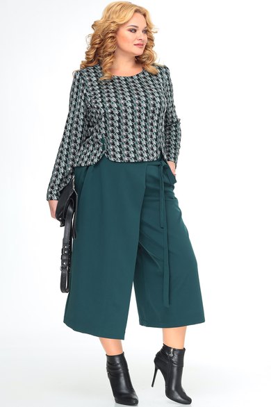Стильный удобный практичный женский комплект, состоит из джемпера и юбки-брюк(кюлоты). Джемпер из трикотажной ткани хорошего качества. Длина по спинке от плеча-59 см, по переду-55 см, рукав -61 см. Модные юбка-брюки(кюлоты) длина 84 см, по переду брюк планка, переходящая в пояс. По поясу сзади есть резинка.