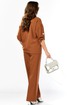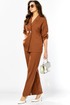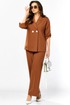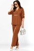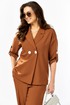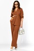 Очень стильный, элегантный, модный женский комплект. Состоит их брюк палаццо и жакета прямого силуэта , со спущенной проймой ,что придает свободу движению и комфорта при носке. Интересный дизайн жакета , двубортный с одним рядом крупных пуговиц контрастного цвета. Рукав на пате с пуговицей контрастного цвета меньшего размера. При желании рукав можно удлинить ,расстегнув пуговицу. Длина жакета по спинке от плеча — 70,5 см Брюки палаццо прямые с функциональными карманами, сзади на резинке. Длина брюк -106 см. Рост модели 173 см.