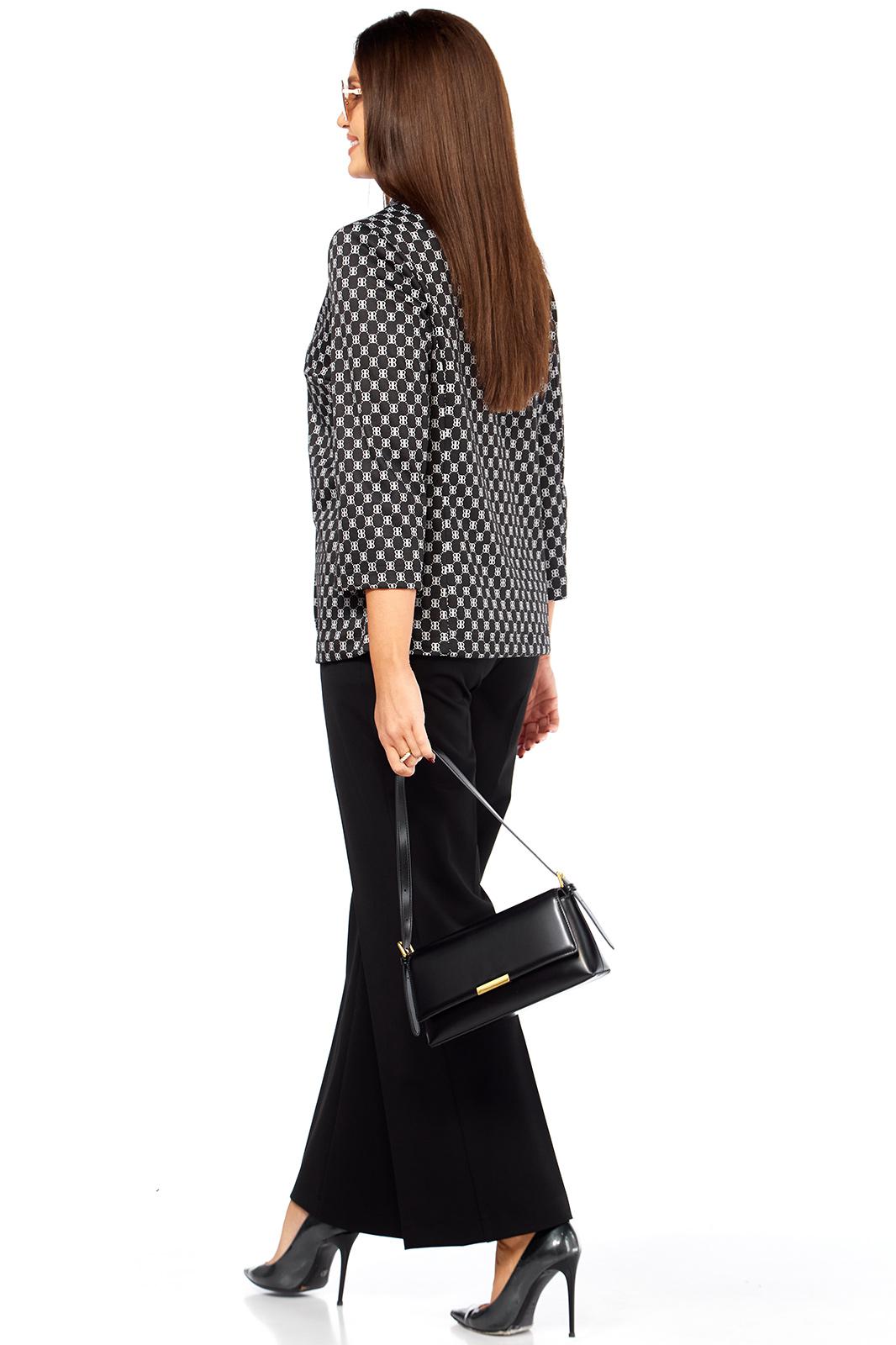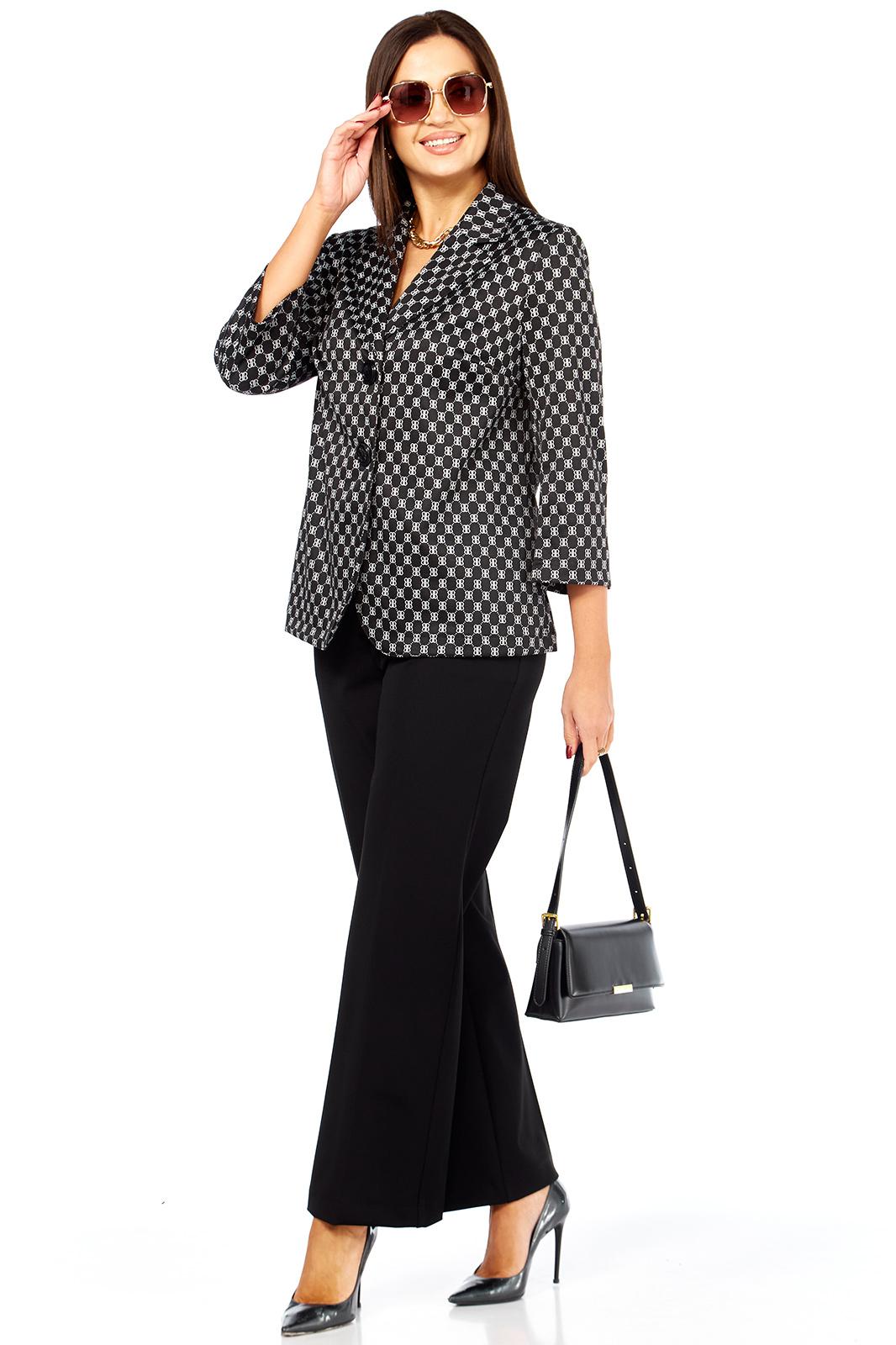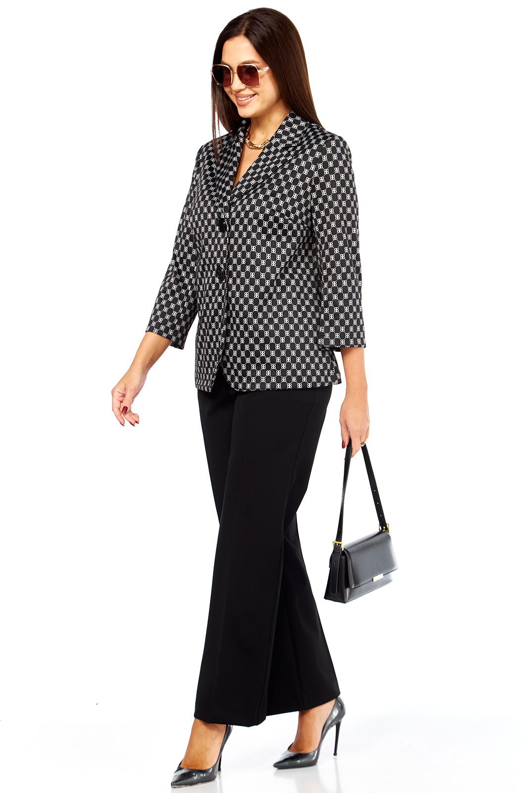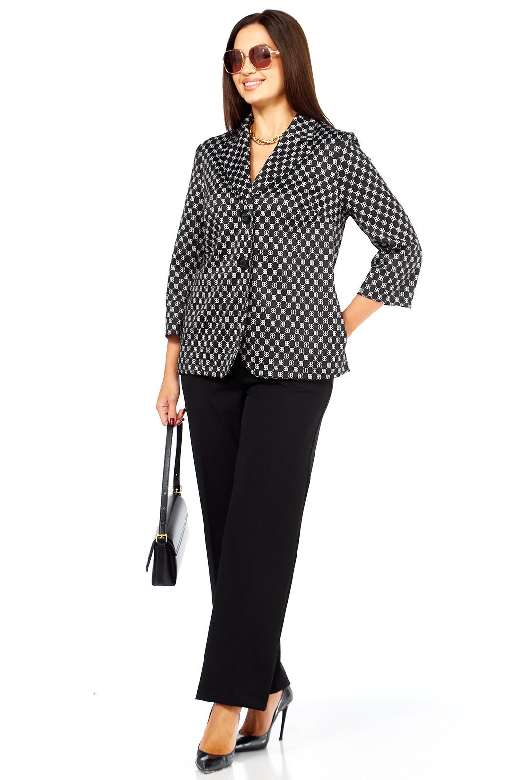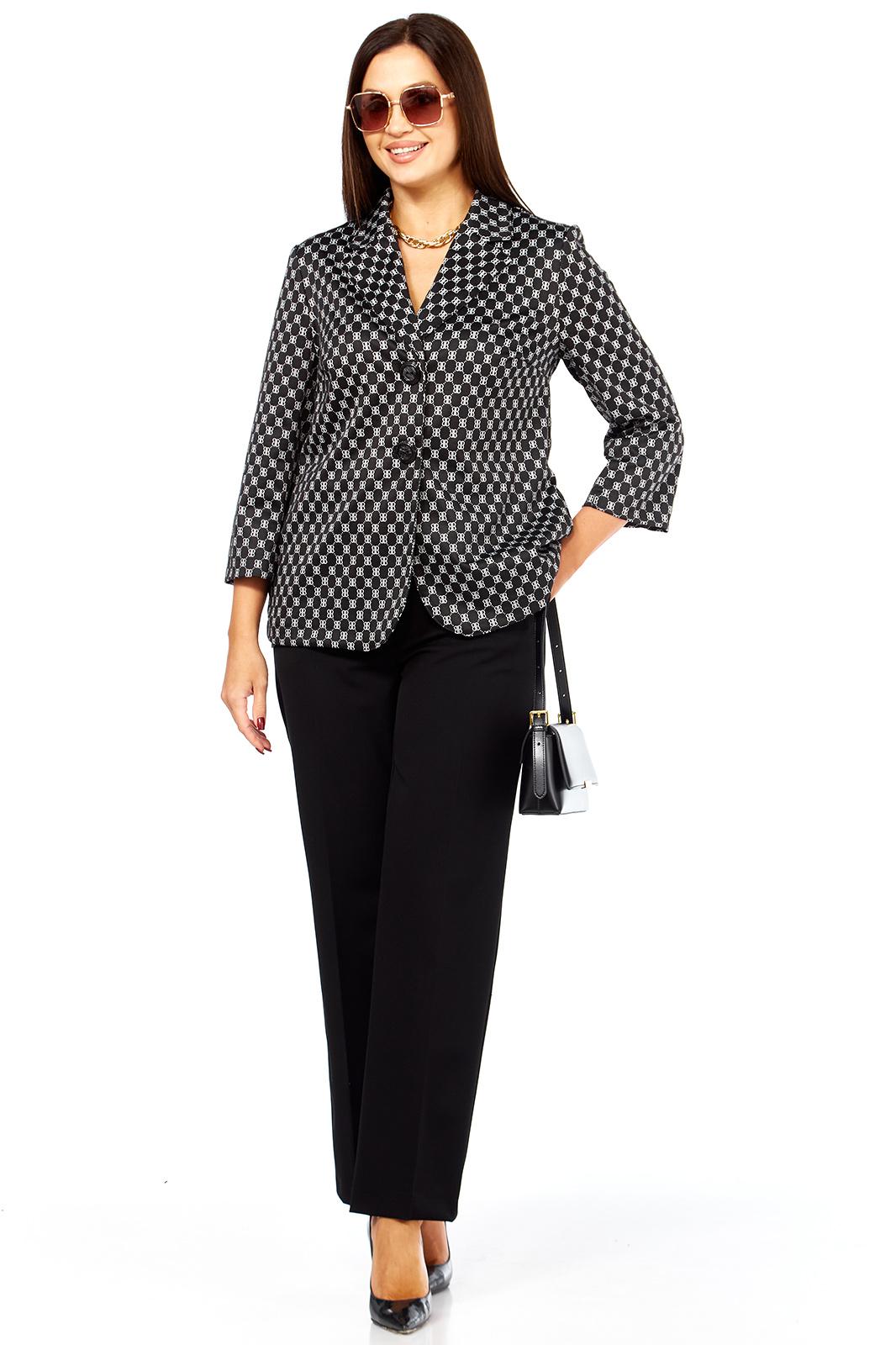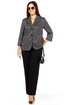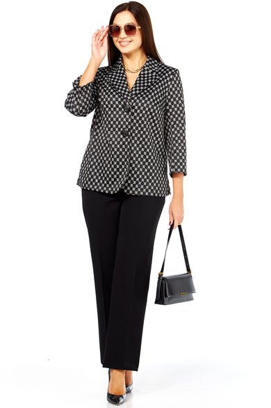 Очень стильный, элегантный, модный женский комплект, состоит из классических брюк и жакета прямого силуэта из трикотажной ткани хорошего качества. Жакет стильного дизайна, с двумя, крупного размера пуговицами. Рукав втачной - 50,5 см. Длина жакета по спинке от плеча 67 см. Сбоку жакета в шве функциональные карманы. Брюки классические, из более плотной костюмной ткани габардин, спереди на молнии с функциональными карманами по бокам. Пояс сзади на резинке