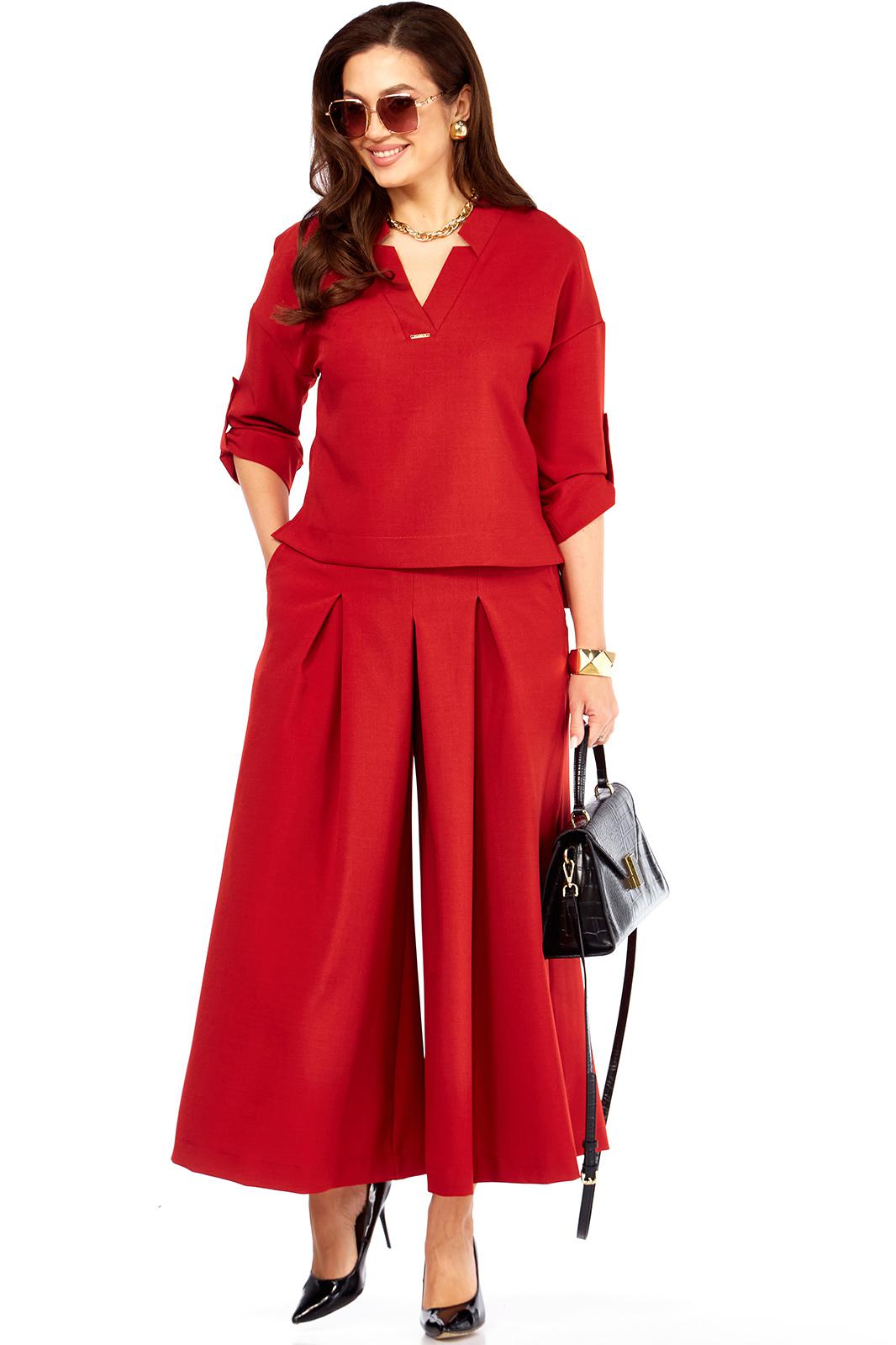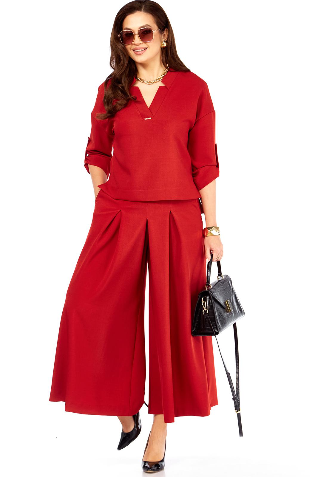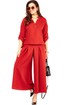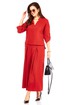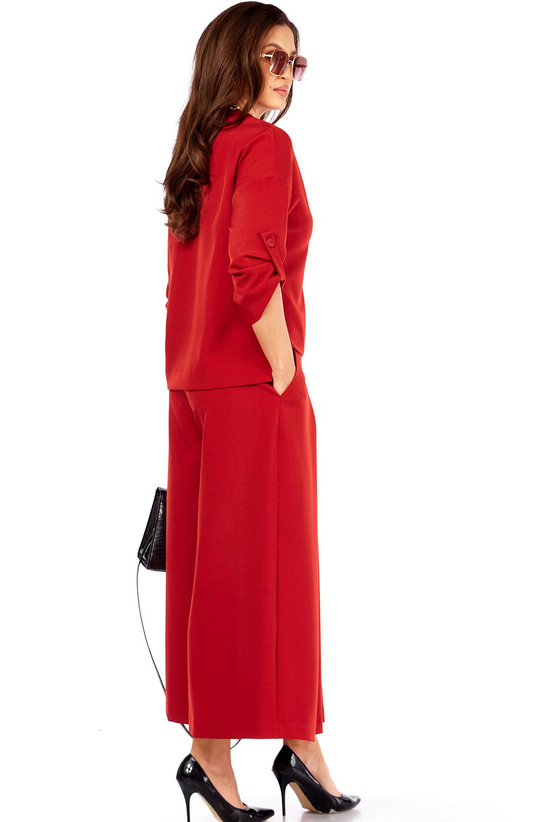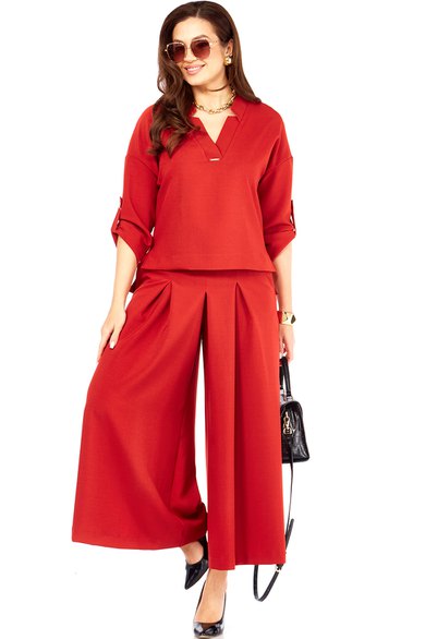 Очень стильный, элегантный, модный женский комплект, состоит из юбки-брюк ( кюлоты ) и жакета . Жакет с интересным вырезом, лейбой золотого цвета внизу выреза, со спущенной проймой и патой с пуговицей в тон жакета. Прямой силуэт жакета , спинка немного длиннее переда , с разрезами по бокам. Очень интересный фасон кюлот , с хорошей посадкой ,с первого взгляда похожи на юбку. Длина кюлот- 95 см . Пояс со шлевками и на резинке сзади. Длина жакет по спинке от плеча 65 см в р-х 46-50 , в р-х 52-54 67см.