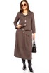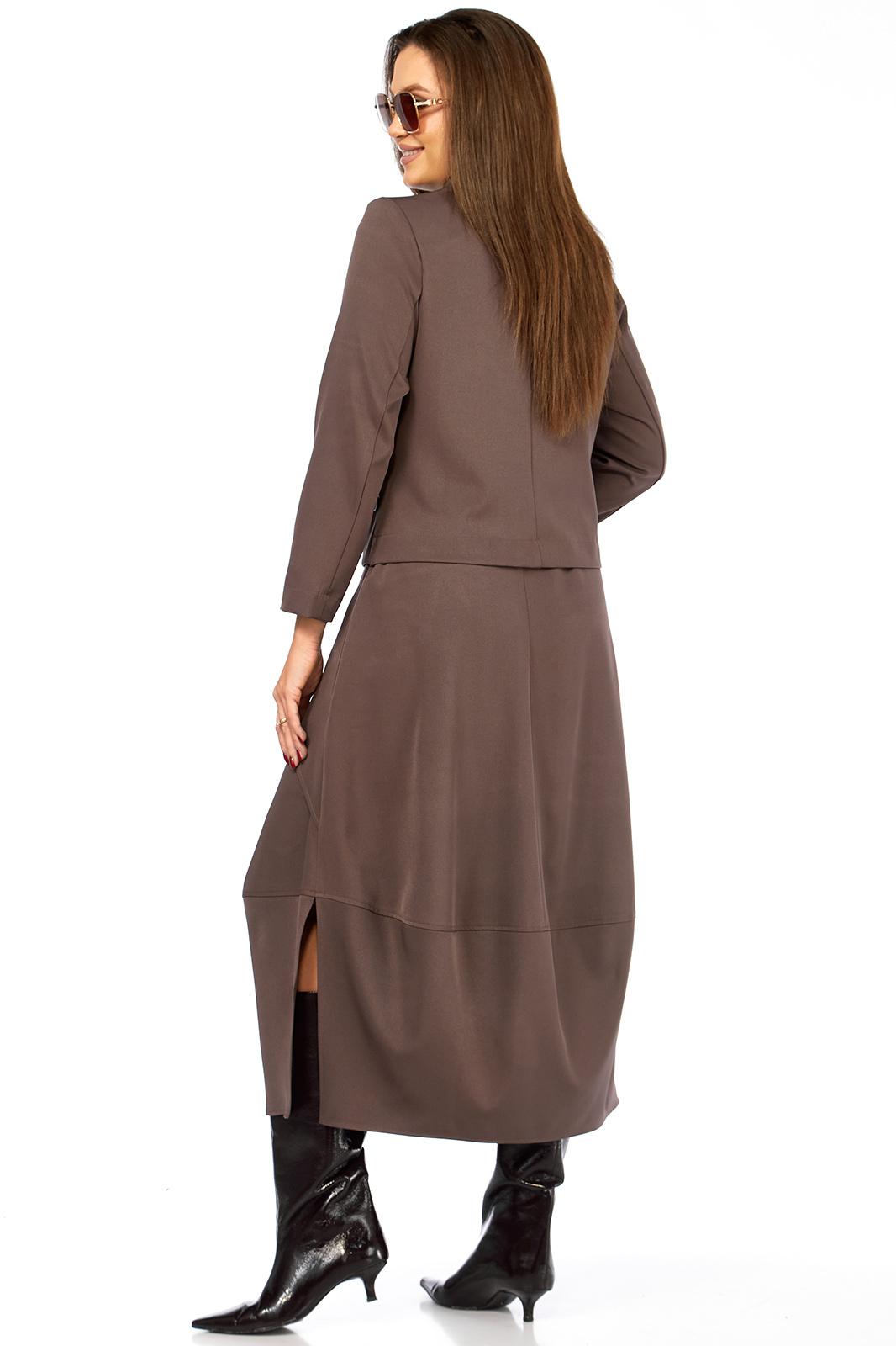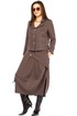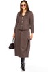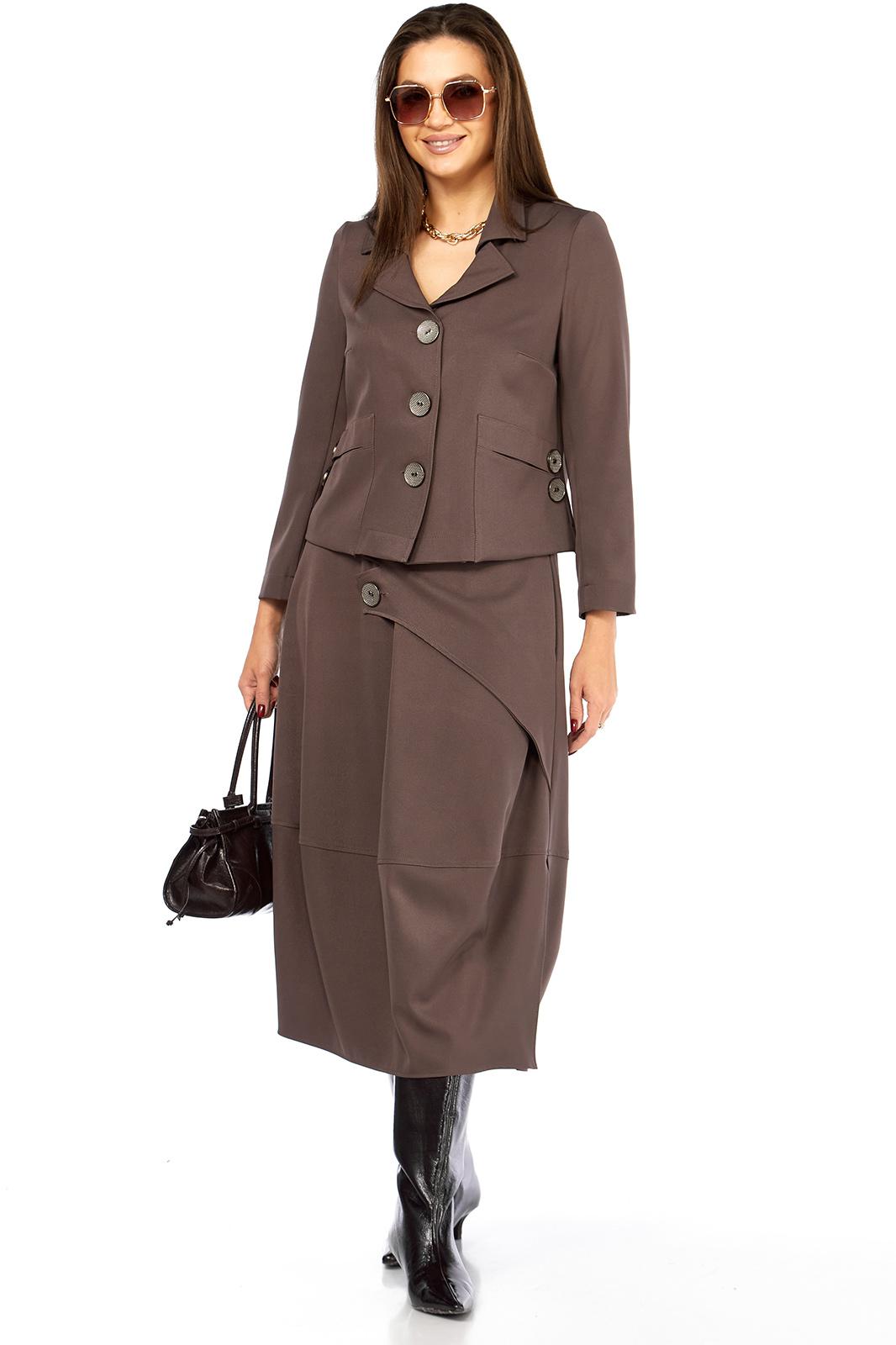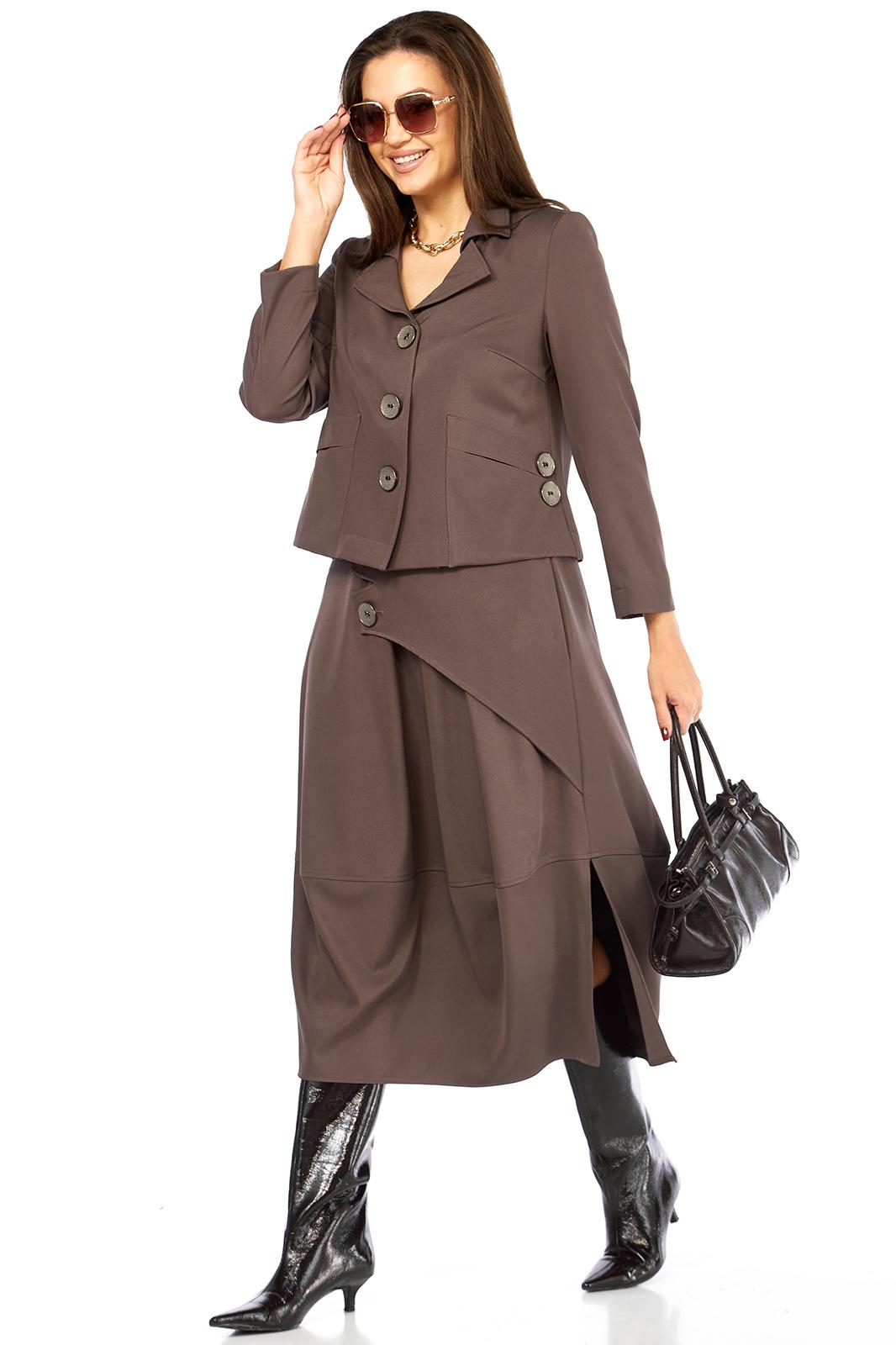 Очень стильный, элегантный , модный женский комплект , состоит блузона и юбки. Блузон с накладные карманы и большими пуговицами. Рукав 7/8 длины — 57 см, воротник интересного дизайна , верхняя часть не соединена с нижней частью . Длина жакета р р 46-50 (54 см) , в р 52-54 (56 см). Стильная модная юбка с расклешением и сужающей планкой книзу , с отлетной деталью сбоку и большими пуговицами , с разрезом сбоку. Длина юбки 81,5 см.