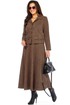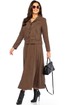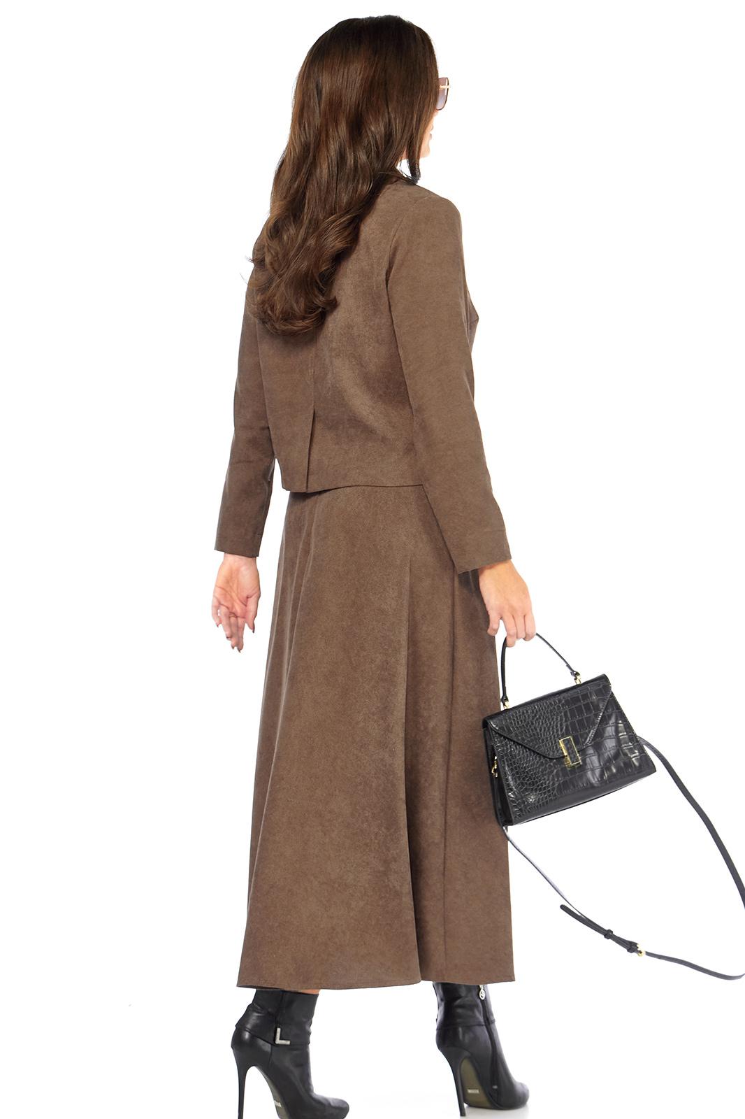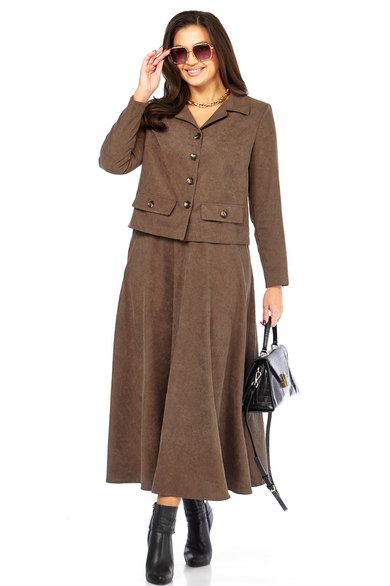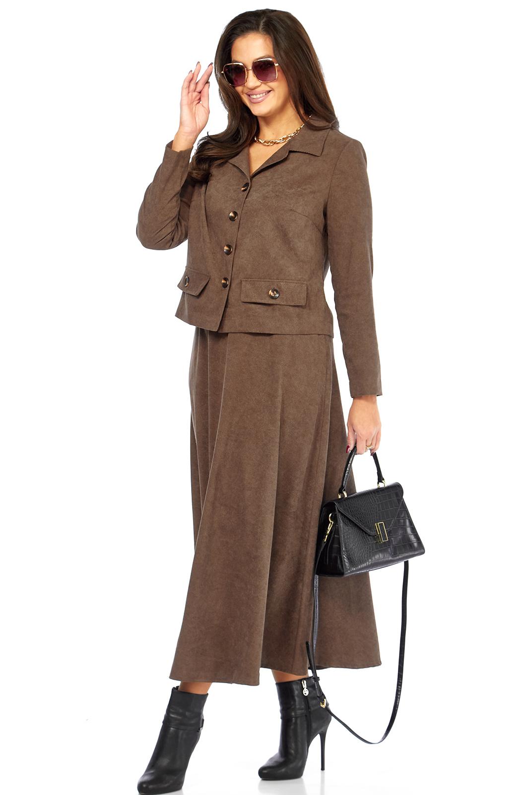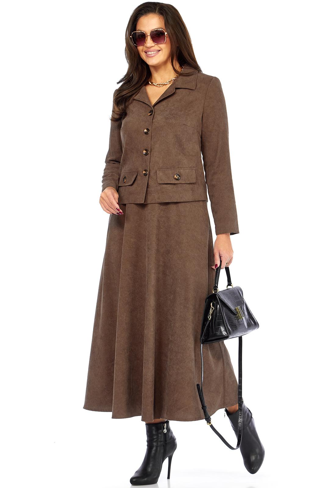 Стильный ,элегантный женский комплект из ткани микровельвет, штрукс в мелкую полоску. Жакет полуприлегающего силуэта , с интересным отложным воротником , с клапанами по низу жакета и пуговицами на них. Рукав длинный, длина рукава- 60 см. Сзади шов , переходящий в шлицу. Длина жакета от плеча сзади 55 см. Юбка очень стильная п/солнце, очень красиво ложится фалдами, это хорошо видно на фото. Сбоку юбки функциональные карманы, пояс по бокам на резинке. Длина юбки - 92 см .