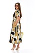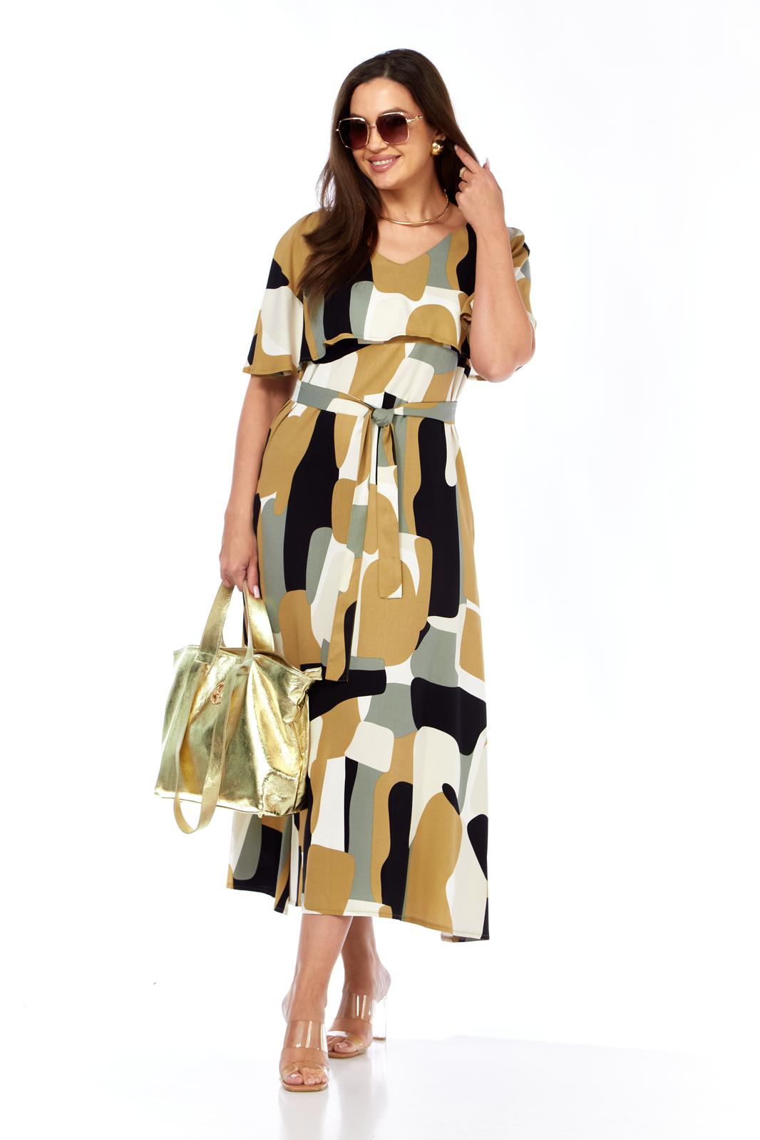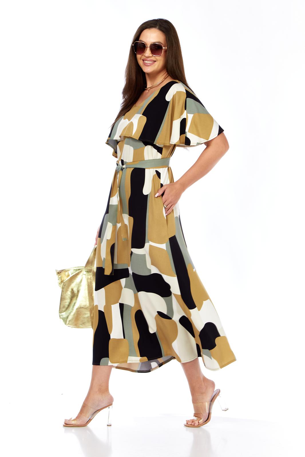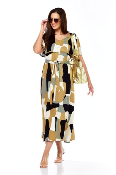 Элегантное , интересного дизайна , стильное женское платье, из ткани хорошего качества вискоза твил. Платье расклешено к низу ,цельнокроеное, можно носить как с поясом , так и без него По верху платья кокетка ,переходящая в рукав. Длина платья от плеча 132 см.