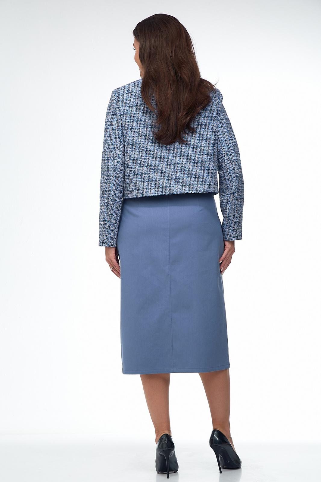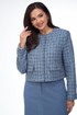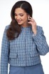 Жакет из ткани «Шанель» на подкладке, прямого силуэта, без воротника с центральной бортовой застежкой на пришивные кнопки. Перед с нагрудными вытачками и клапаном. Рукав втачной двухшовный. Вырез горловины круглый.