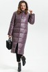 Длинное утепленное пальто прямого покроя на стеганной подкладке. Застежка на металлическую молнию, карманы в швах бочка. Воротник-стойка с капюшоном.
