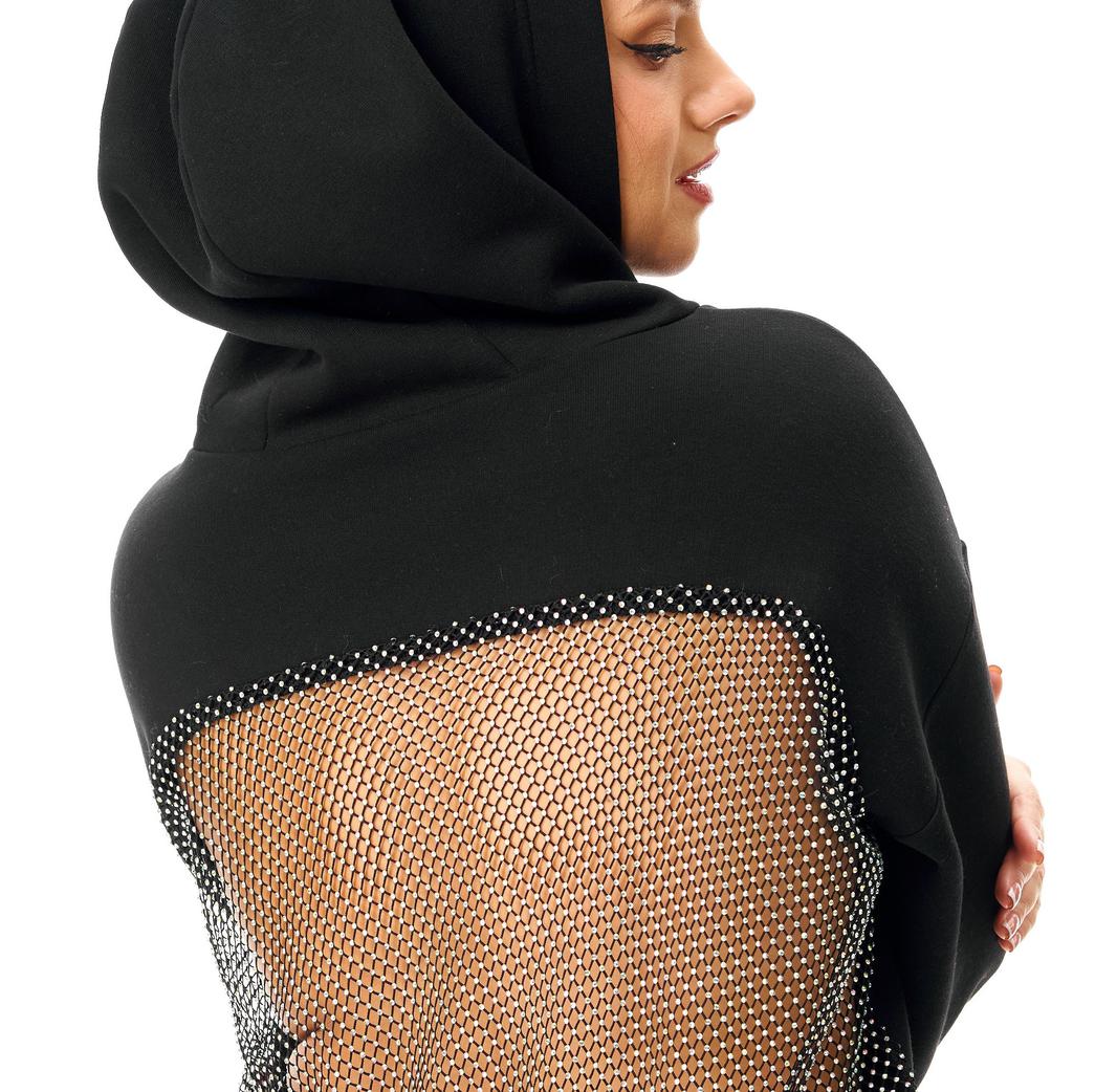 Сочетание нежности и дерзости в одной модели. Это не просто худи, а настоящий арт-объект для вашего гардероба. Мягкий и уютный крой спереди идеально контрастирует с соблазнительной спинкой, украшенной сеткой со стразами.