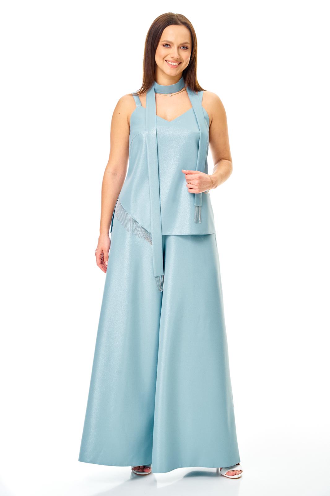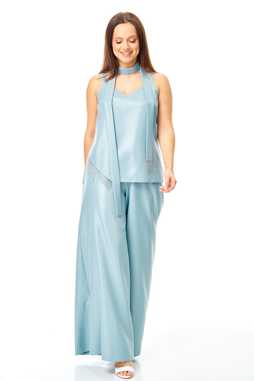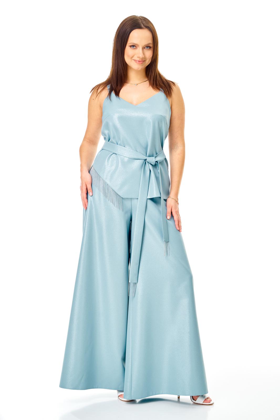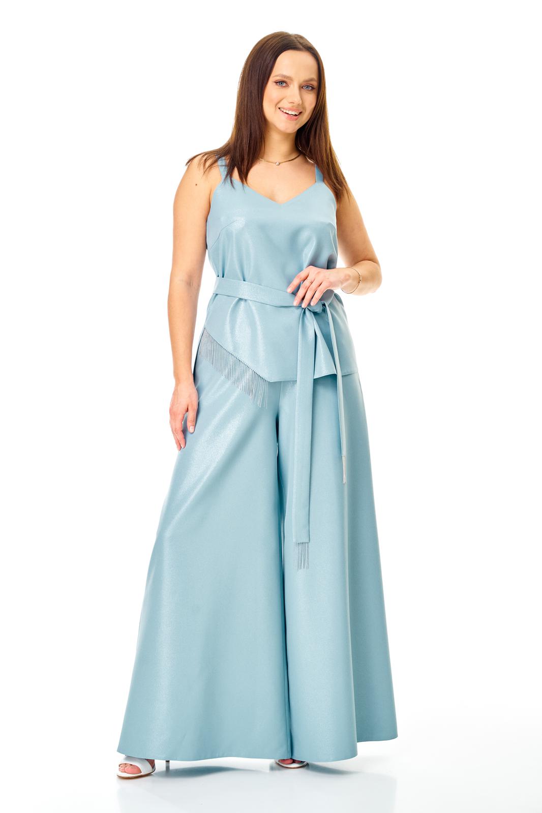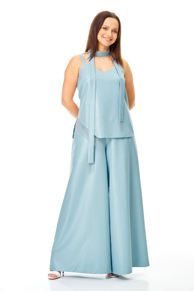 Брючный комплект из плотной плательной ткани с легким блеском.