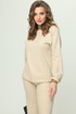Мягкий уютный джемпер из тактильного трикотажного полотна. По горловине неплотно облегающая шейку стойка из декоративной трикотажной тесьмы. Рукав длинный цельнокроеный, собран на манжетку .