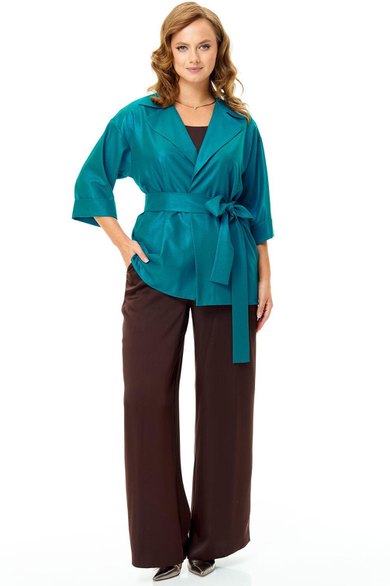 Шазюбль из легкого шифона с блеском свободного кроя, без застежки. С воротником и лацканами пиджачного типа. Рукав 3/4 с манжетой. Съемный пояс делает образ романтичным.