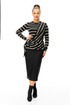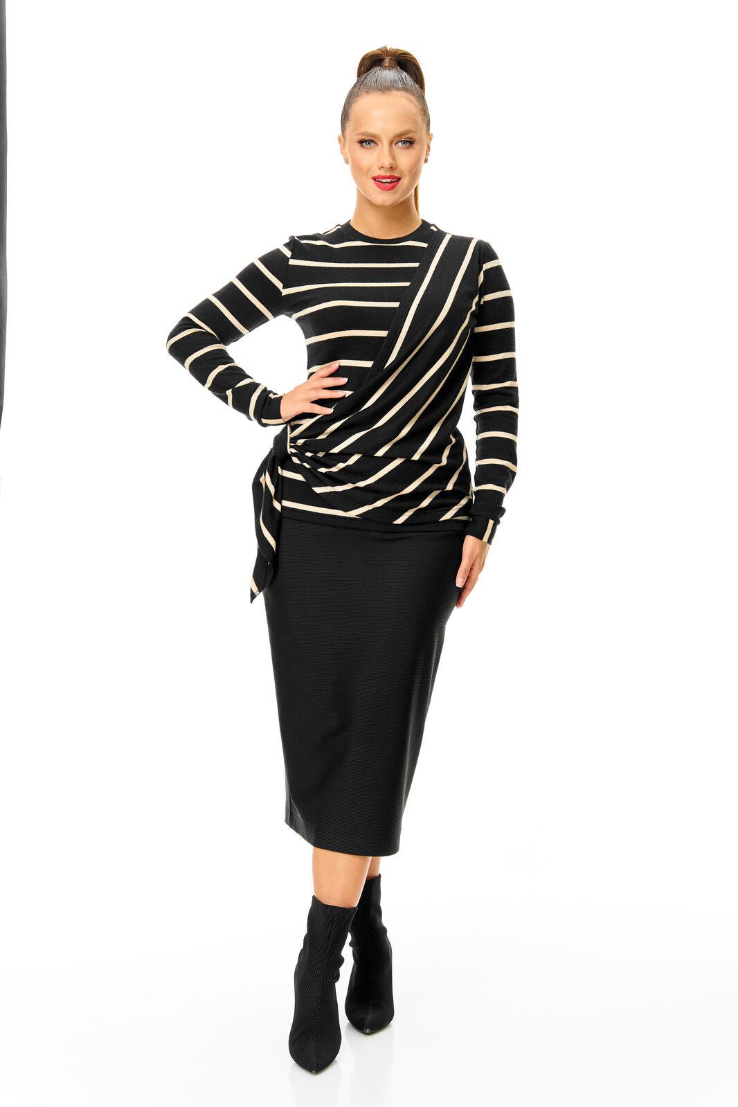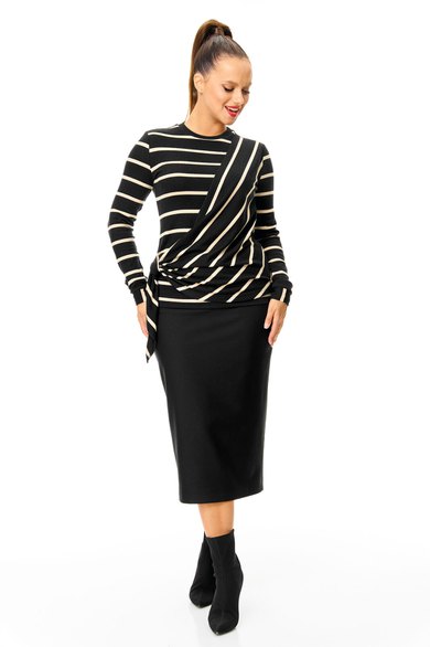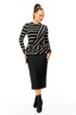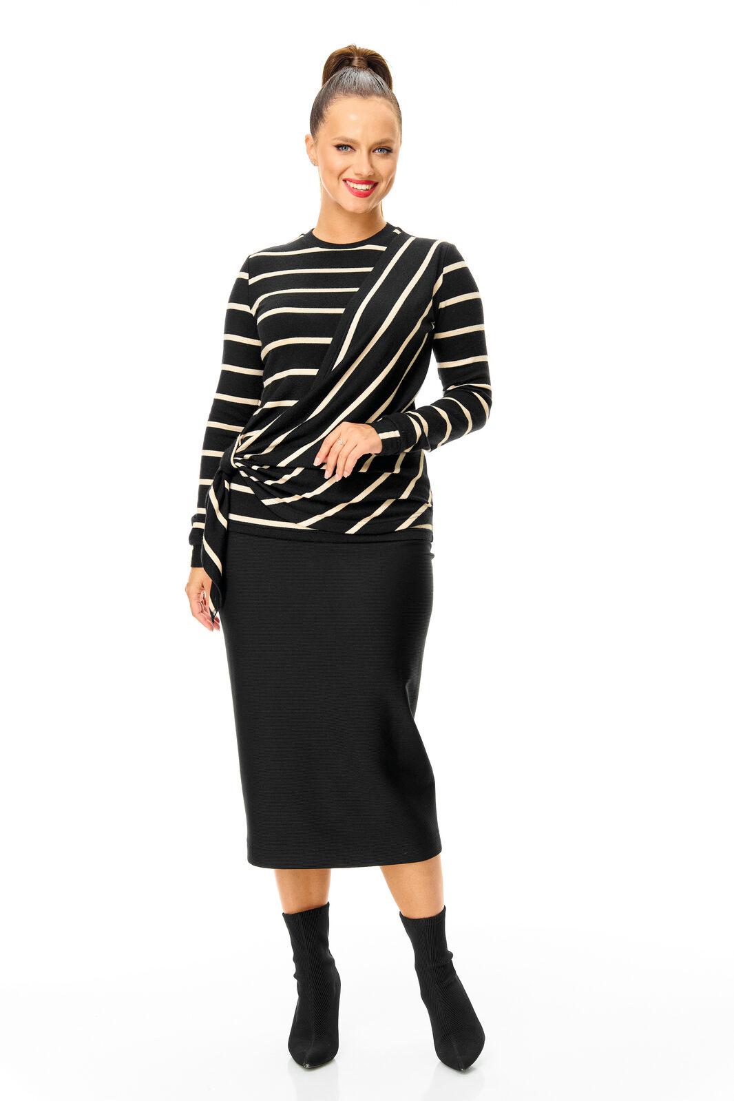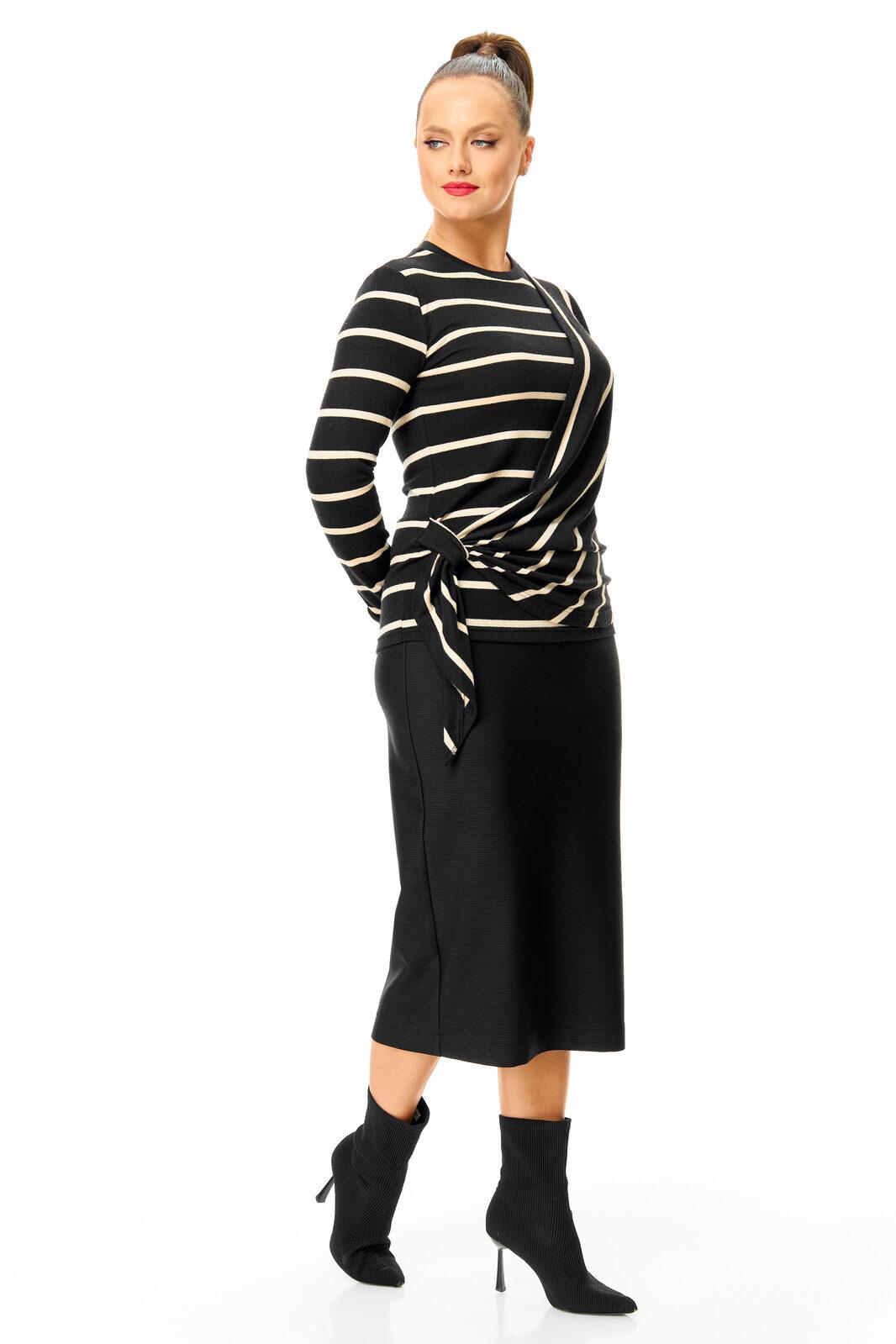 Стильный трикотажный комплект: джемпер и юбка-midi в современном сочетании «полоски» и черного.