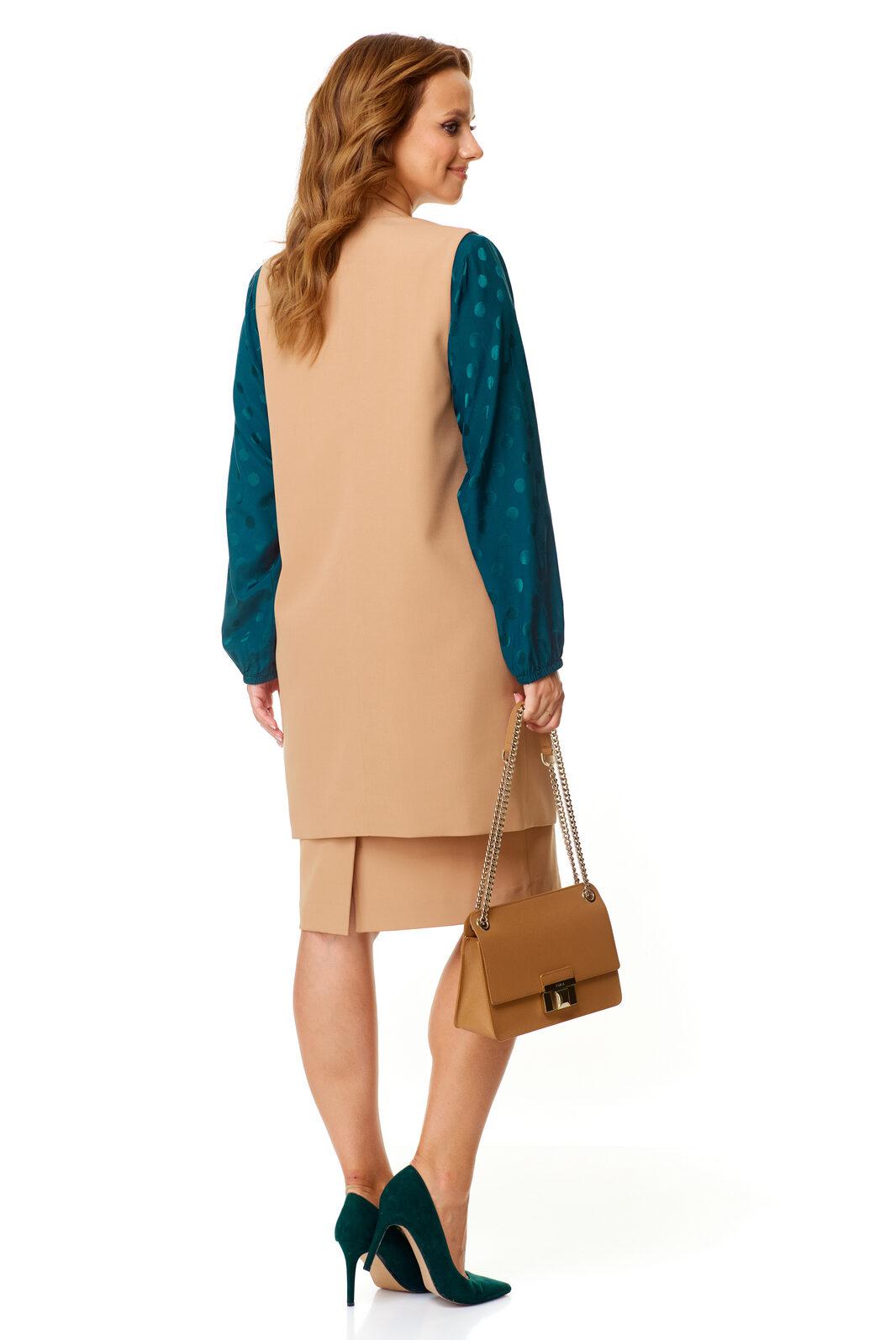 Современный деловой комплект состоит из удлиненного жилета , классической юбки и легкой блузы.
