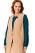 Жилет закрывает бедра, слегка приталенного силуэта, застегивается на одну кнопку на талии. Без воротника. Карманы по переду. Жилет на подкладке.