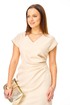 Элегантное нарядное женственное платье из ткани с деликатным блестящим напылением. Платье полуприлегающего силуэта мягко подчеркивает фигуру. V-образный неглубокий вырез визуально вытягивает линию шеи. Драпировка складками по линии талии красиво формирует силуэт. Плечо спущено. Без рукава. По спинке застежка «молния». Платье без подкладки.