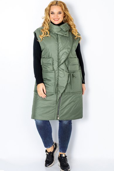 Неординарный жилет с воротником-стойкой на пуговицах, эффектным воланом на завязках, застежкой-молнией по борту, необычными карманами и кулиской по талии спинки внесет стильную нотку в весенний гардероб современной женщины. Ширина по груди - 64 см, ширина по бедрам - 64 см, длина изделия - 98 см. Обмеры 54 размера.
