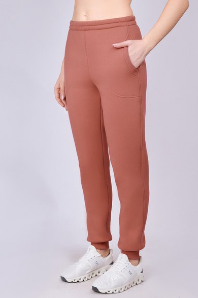 Брюки из футера с начесом. На переде имеются карманы, вход в карман обработан трикотажным полотном кашкорсе. Брюки имеют высокую посадку. Низ брюк имеет манжету из трикотажного полотна кашкорсе.