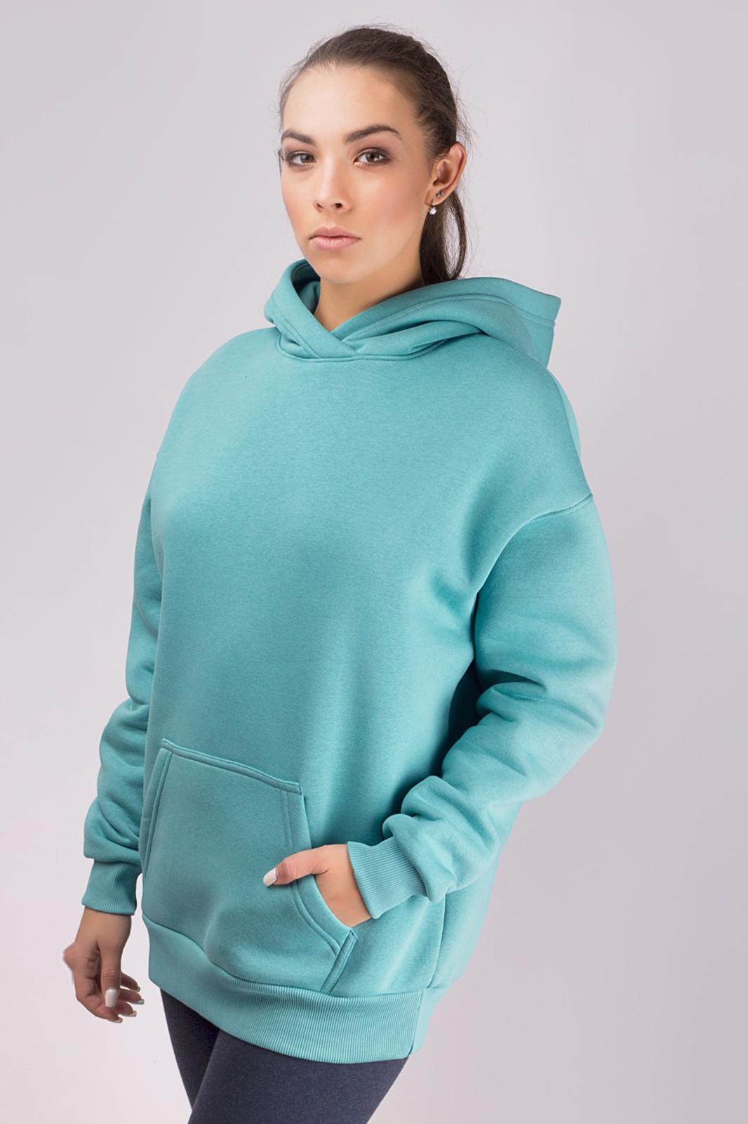 Джемпер из футера с начесом. Джемпер прямого силуэта с капюшоном, спущенная линия плеча. На детали переда есть накладной карман. Низ рукавов и низ изделия обработан трикотажным полотном кашкорсе.