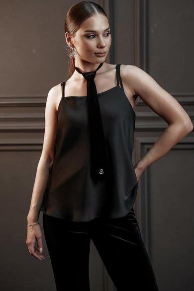 Атласная блузка-топ свободного силуэта на регулируемых бретелях. Блузка на атласной подкладке.