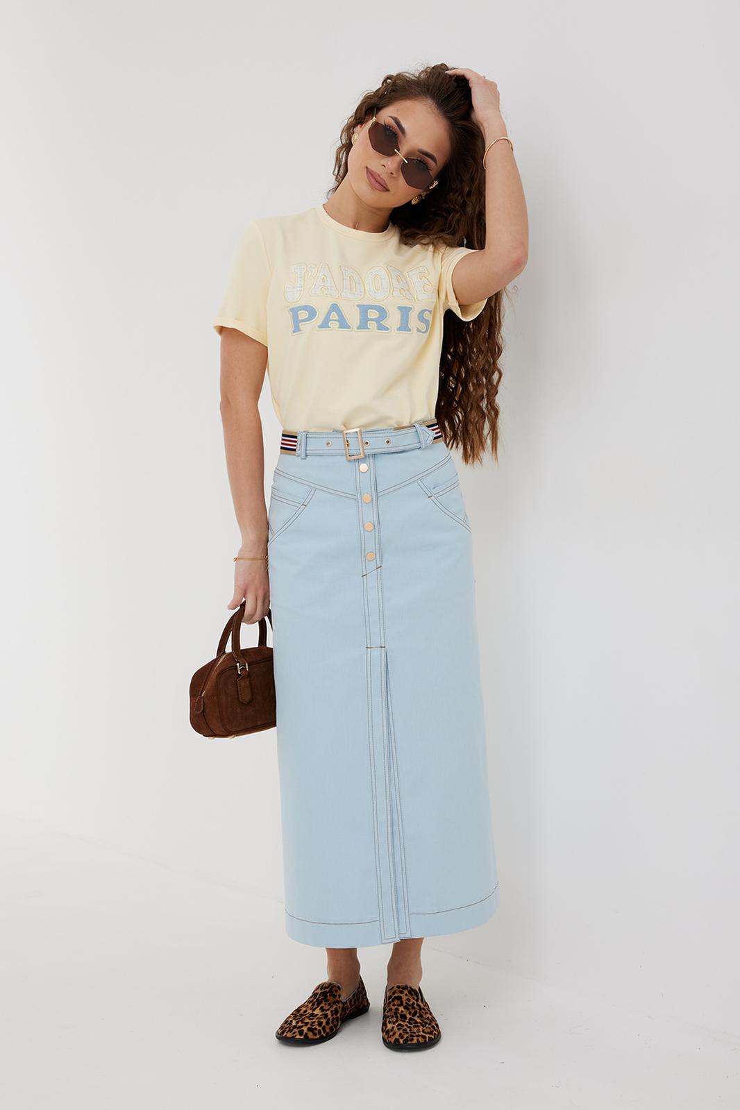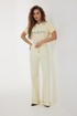 Блузка прямого силуэта из трикотажного полотна. Горловина круглой формы с бейкой. Рукав короткий с подгибкой на лицевую сторону. По переду вышивка с использованием декоративной ткани.