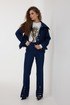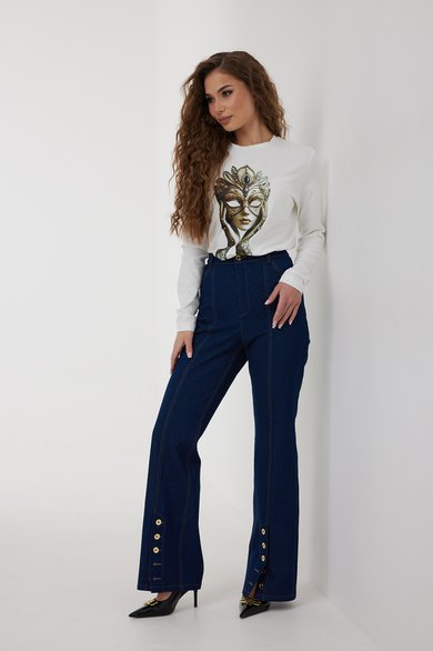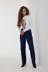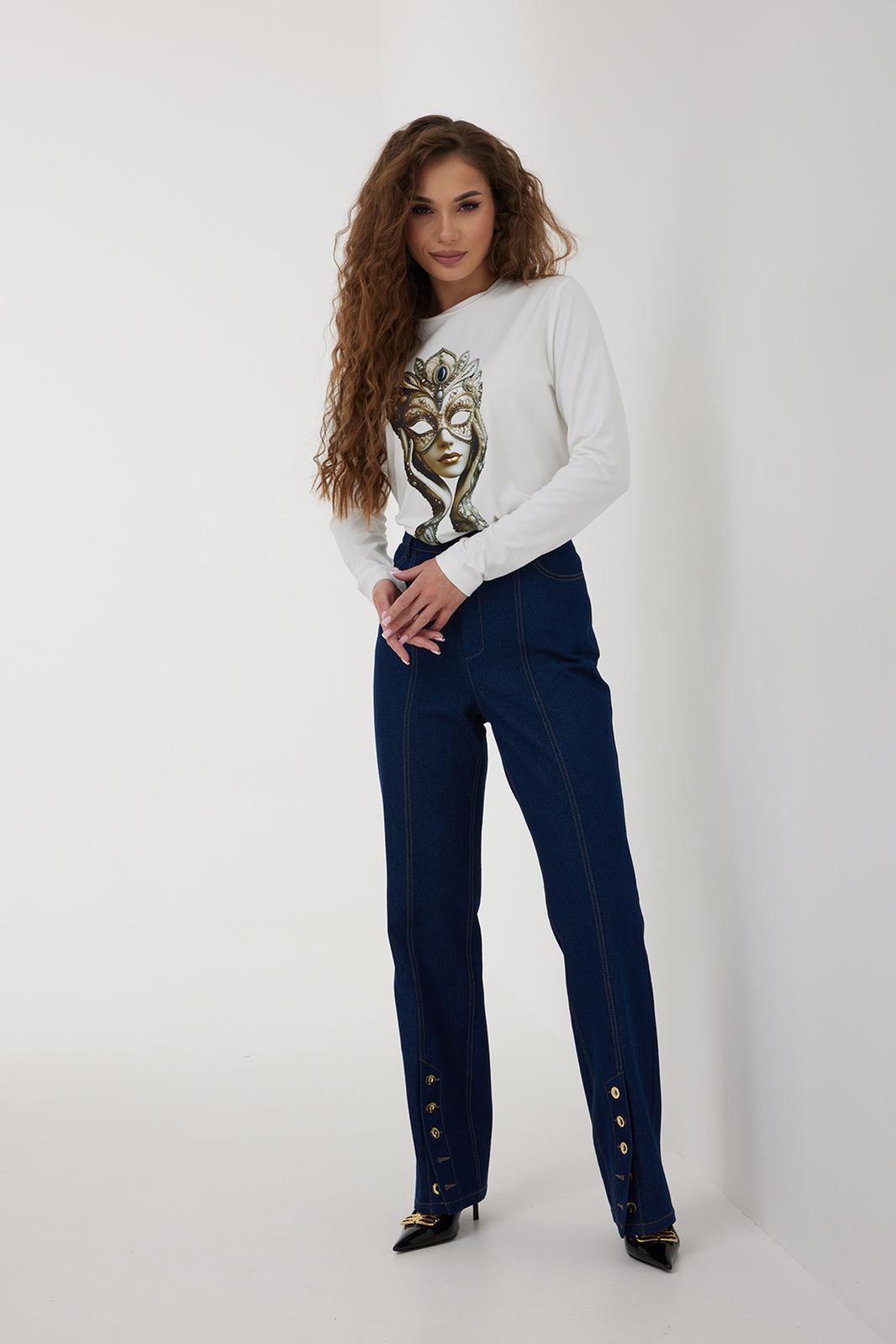Джемпер прямого силуэта из трикотажного полотна. Горловина круглой формы с бейкой. Рукав длинный зауженный к низу. Перед декорирован печатью.