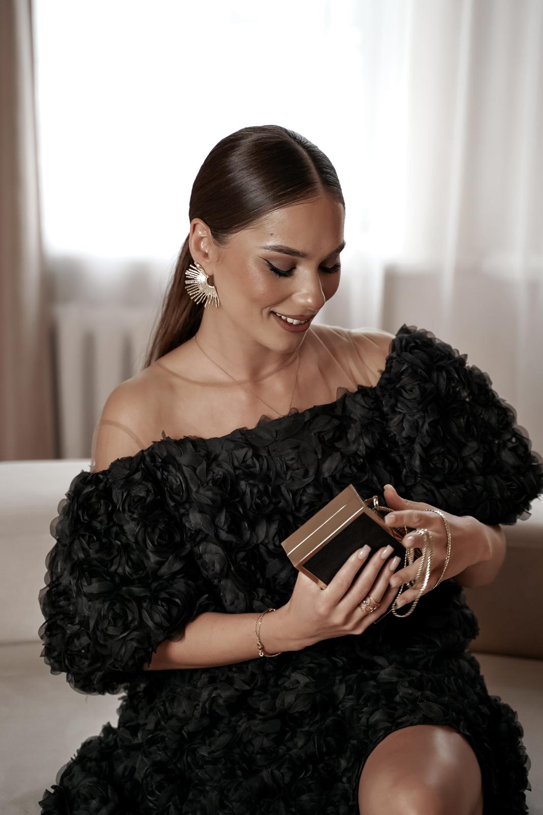 Платье А-силуэта. Длина мини. Горловина круглой формы. По горловине спинки застежка на крючок. По переду и спинке кокетка из сетки. Рукава съемные пышной формы. Платье на подкладке.