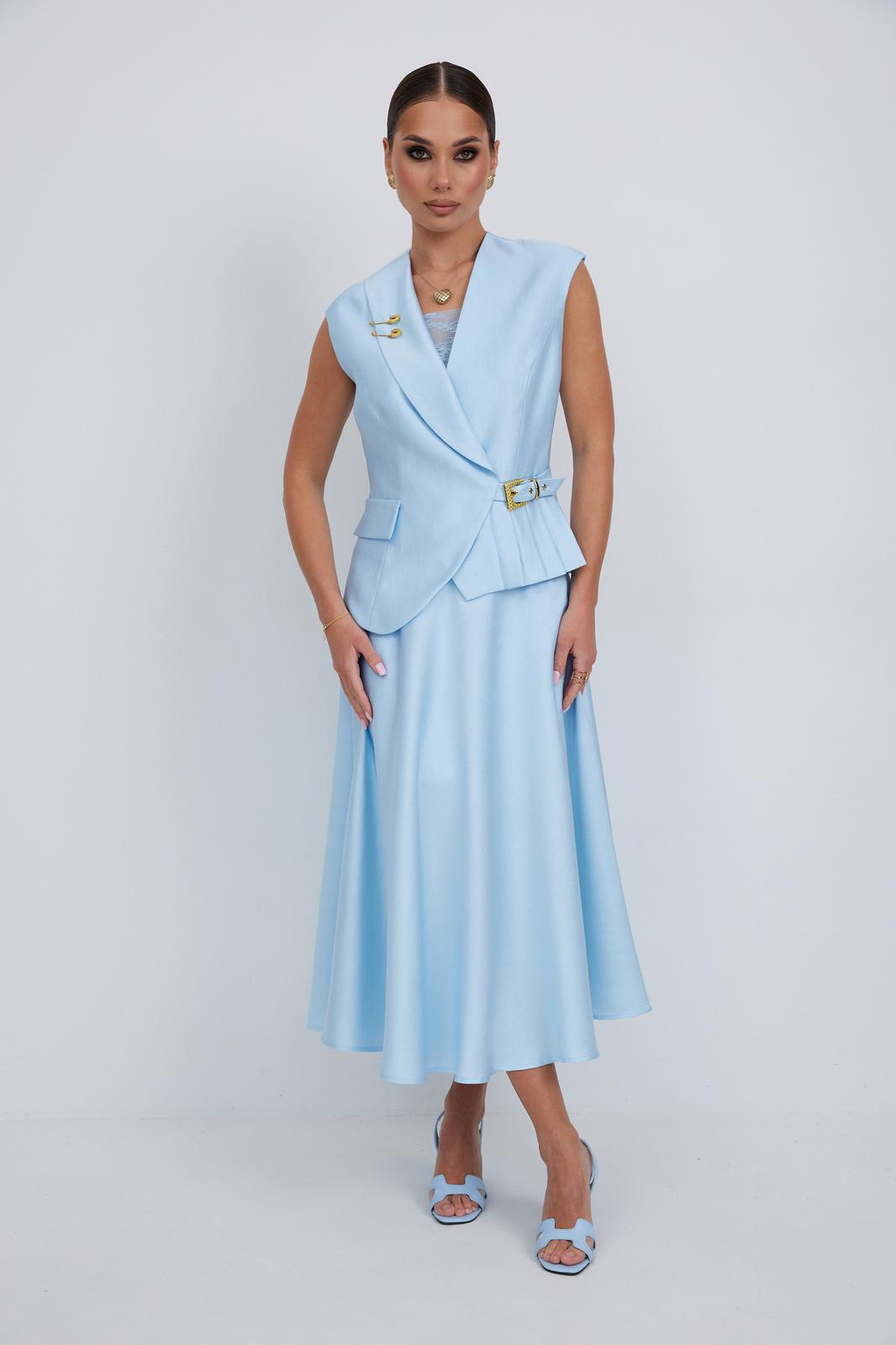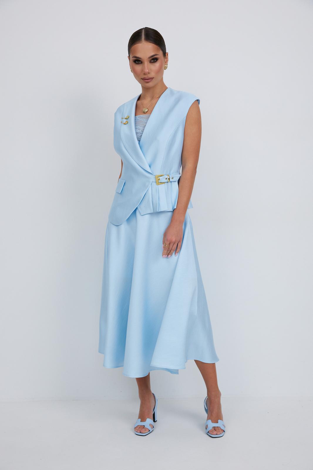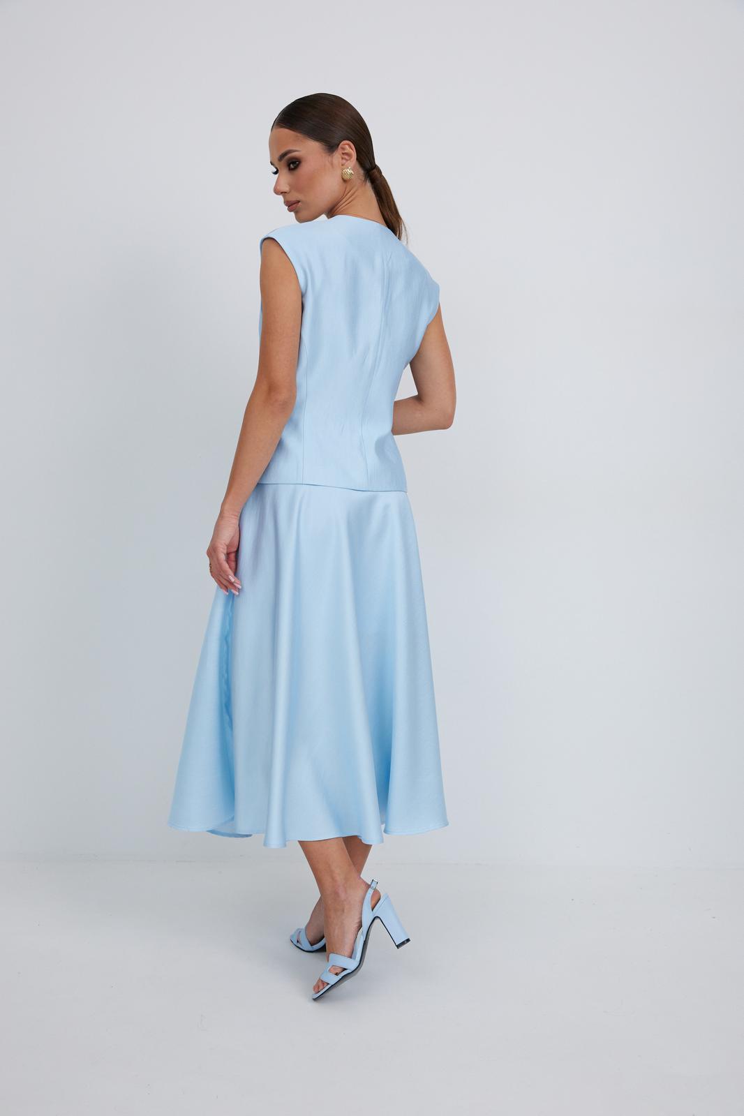 Юбка из костюмно-плательной ткани «полусолнце» с кокеткой, длины «миди». Застежка- молния в боковом шве. Юбка на подкладке.