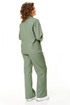 Рукав длинный с отделочной нашивкой.По переду обработаны прорезные карманы с листочкой.Спинка со средним швом.Брюки свободного силуэта типа палаццо с защипами на передних половинкахЗастёжкой на молнию и петли-пуговицы.В боковых швах карманы с отрезным бочком.Пояс притачной с резинками по бокам.Отделочные строчки контрастного цвета.Вся фурнитура металлическая premium качества.