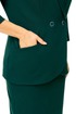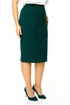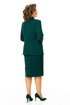 Костюм женский состоит из жакета и юбки.Жакет полуприлегающего покроя с зауженной линией плеча на подкладке.Застежка двубортная петли-пуговицы.По спинке и переду обработаны рельефы выходящие из плеча.Низ борта округлой формы.Воротник типа шаль.По переду обработаны карманы в подрезах.Рукав длиной 3/4 со складками по окату.Юбка на подкладке зауженного силуэта типа карандаш.В среднем шве заднего полотнища застежка на потайную тесьму-молнию и шлица.Пояс притачной с резинкой в боковых швах.В комплект входит съёмная металлическая брошь.