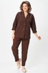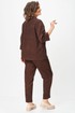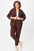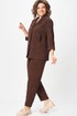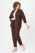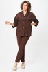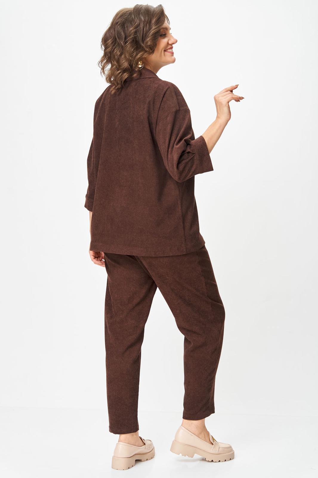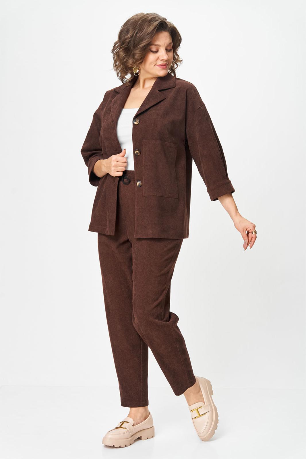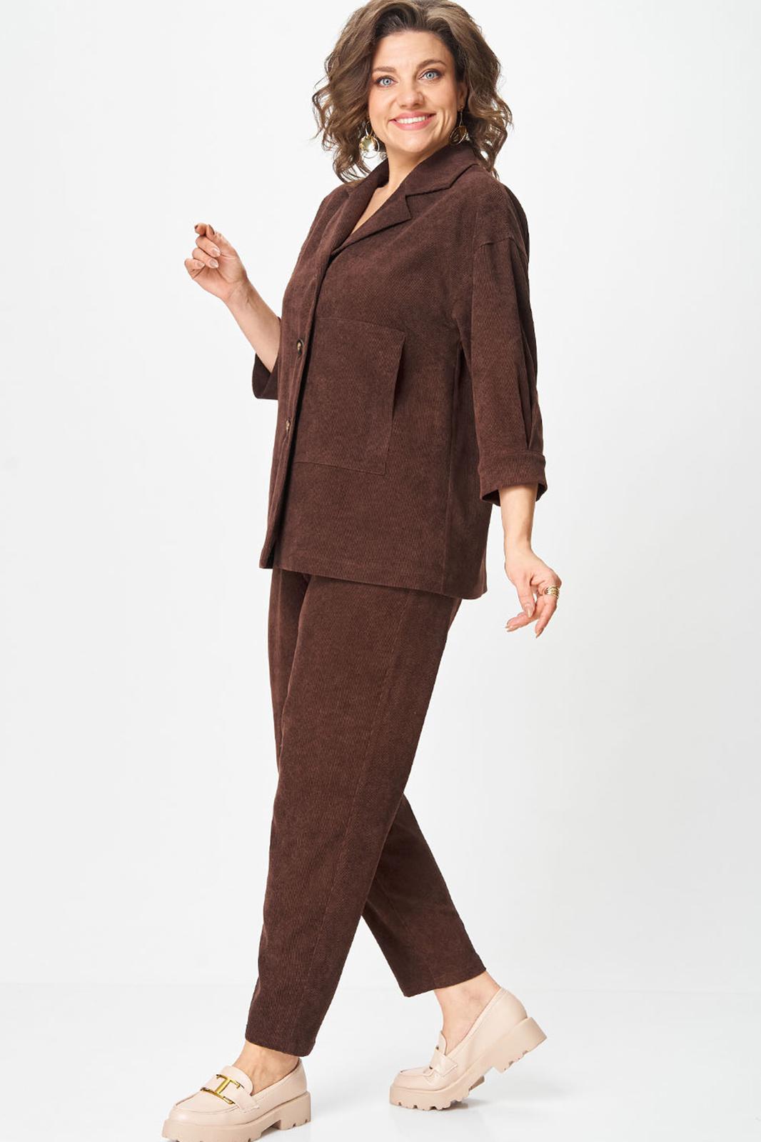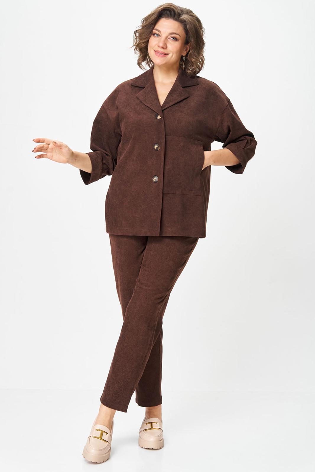 Костюм 2-х пред жакет+ брюки. Жакет классический из ткани вельвет без подкладки. Воротник пиджачного типа, рукав спущенный низ рукава с встречной складкой обработан манжетом. Застежка на петли пуговицы, на полочке накладной карман. Брюки: Верхний срез брюк обработан поясом в пояс вставлена резинка и шнур для регулировки . В боковых швах брюк карманы.