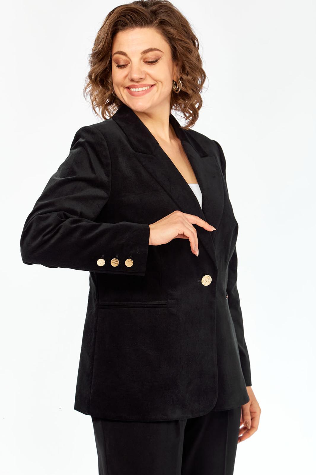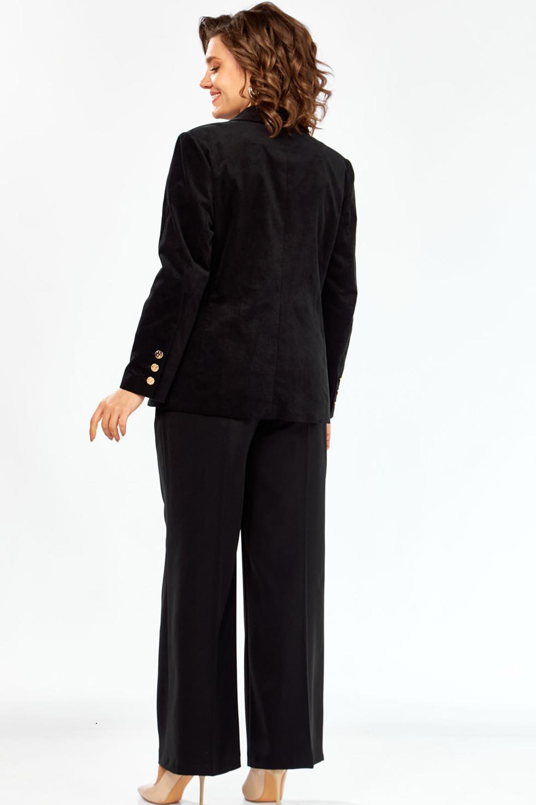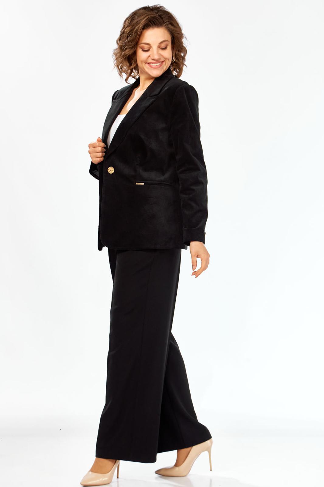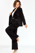 Элегантный женский костюм, состоящий из бархатного жакета и брюк прямого кроя.