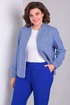 Комплект женский 2-х предметный полуприлегающего силуэта. Состоит из жакета на подкладке и брюк. Жакет с центральной застёжкой на декоративную разъёмную тесьму – «молнию». Перед с наклонным подрезом и функциональным карманом с листочком в нём. Спинка со средним швом. Рукав втачной, одношовный с притачным манжетом на резинке по низу, длинный. Жакет с цельнокроенной стойкой фигурной формы. Брюки с застёжкой на тесьму «молнию» в средних срезах передних половинок, с карманами наклонными к боковым швам, с притачным поясом на резинке по задним половинкам и застёжкой на 1 петлю и 1 пуговицу. По передним половинкам вытачки. По передним и задним частям заутюженные канты. По левой половинке брюк вдоль пояса клапан с пуговицей. Брюки полуприлегающего силуэта слегка зауженные к низу. Длина жакета по спинке - 61 см. Длина рукава - 61 см. Длина брюк по передней части - 96 см.