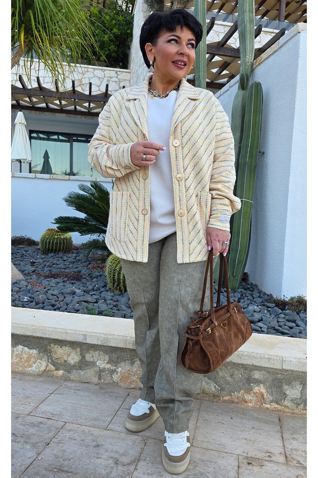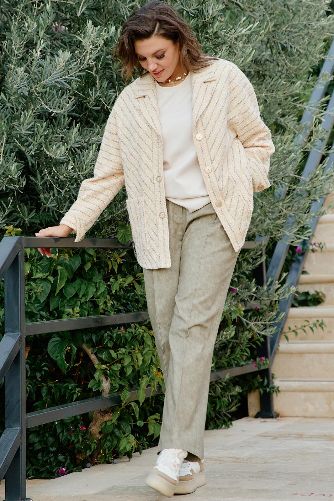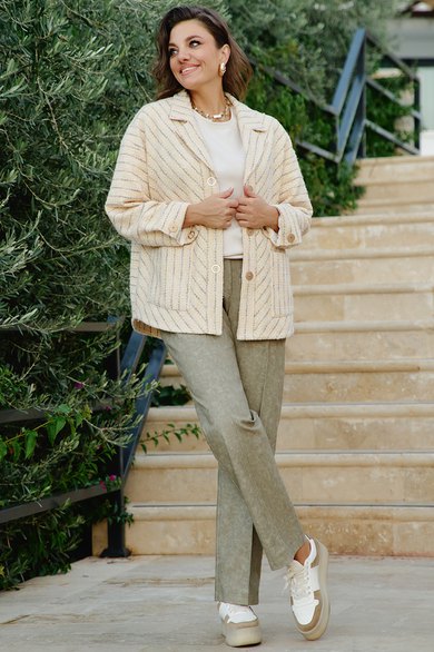 Брюки классического, прямого силуэта это эталон спокойной элегантности и практичности. Цвет «хаки» не кричащий, но выразительный, способен гармонировать с чем угодно, оставаясь идеальным фоном или достойным акцентом в комплекте. Свободный крой дарит комфорт и свободу. Брюки прямые зауженные к низу, с застроченными кантами по переду и застёжкой на тесьму-молнию в гульфике и пуговицу по центру пояса. Пояс притачной по бокам на тесьме-резинка для максимального комфорта по талии. По переду брюк в верхней части джинсовые карманы. На задней части брюк фигурная кокетка. В этой модели брюк чувствуешь себя комфортно, современно и уместно в любой ситуации, где ценится стиль. Это инвестиция в гардероб, которая будет служить верой и правдой сезон за сезоном. Длина брюк по боковому шву 98 см.