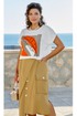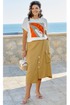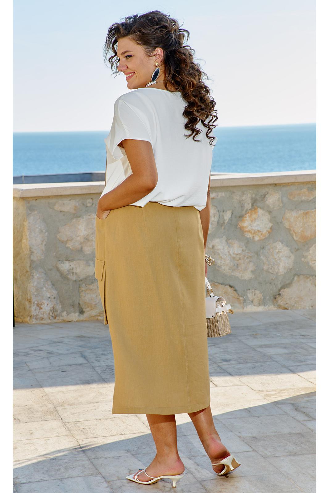 В данном комплекте отлично сочетается блуза молочного цвета футболка и ассиметричная юбка цвета хаки образуют гармоничный тандем, который не просто радует глаз, но и запоминается своей уникальностью и стилем. Этот комплект отлично подходит как для повседневной носки, так в нем можно отправиться на прогулку по городу, встретиться с друзьями в кафе. Каждый шаг в этом наряде наполнен лёгкостью и свободой, подчеркивая самобытность и ощущение комфорта, что делает его идеальным выбором для женщины, стремящейся к самовыражению через стиль.