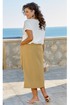 - Тип ткани: Блузка: 100% полиэстер. Юбка: 48% лен, 52% вискоза.