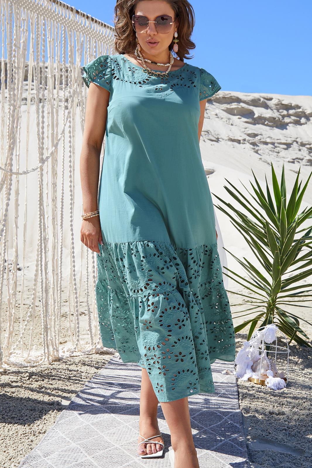 Изящное платье в модном цвете этого сезона, с красивым ришелье, которое не может остаться незамеченным! Очень комфортное с разведением к низу.