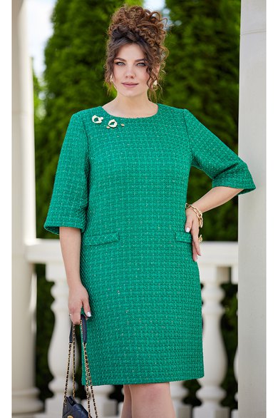 Безумно красивое и стильное платье в модном цвете не оставит Вас незамеченной! Данное платье станет отличным дополнением в Вашем гардеробе, и идеально подойдёт как для повседневных образов, так и для работы в офисе. Платье А-силуэта с горловиной формы-лодочка, с нагрудными выточками по переду и декоративными листочками карманов. По спинке застёжка на декоративную тесьму-молнию в среднем шве. Рукав втачной, длиной ¾ немного расширяется к низу. Платье на подкладке. В качестве дополнительно декоративной отделки перед платья оформлен брошками и отделочными декоративными пуговицами.