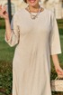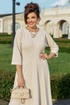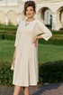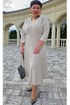 Платье выполнено из высококачественного трикотажа в рубчик, известного как лапша, это платье обеспечивает приятные тактильные ощущения и отличную посадку по фигуре. Силуэт клеш от талии деликатно ниспадает, создавая летящую, женственную форму, которая подчеркивает достоинства фигуры и дарит свободу движений. Горловина округлой формы, оформлена бейкой. По переду платья фигурные подрезы, позволяющие полоске в платье ложиться в разных направлениях создавая интересный образ; у плеча декоративная заложенная складка. Рукав в платье цельнокроеный. Длина миди и рукава три четверти придают платью утонченный и завершенный вид. Длина платья 119 см, длина рукава 52 см.