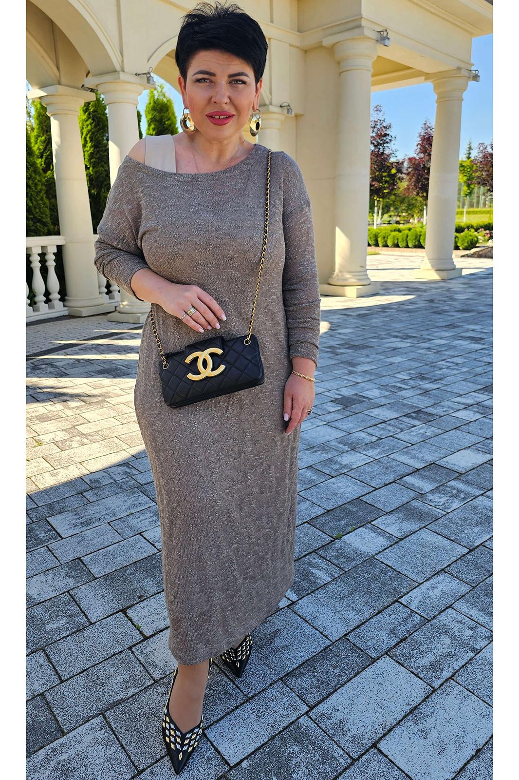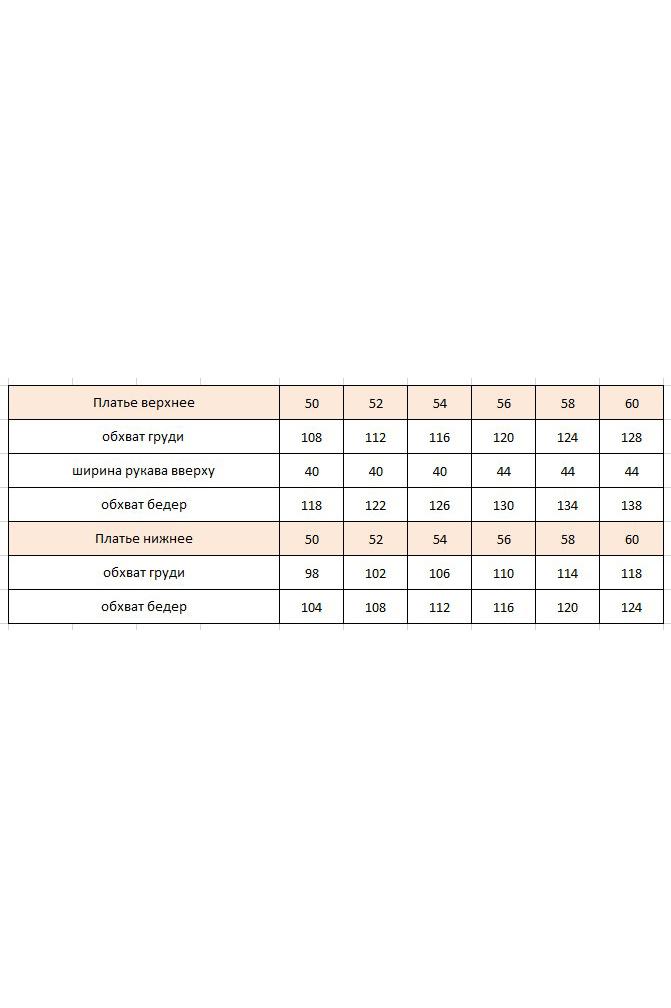 Современное трендовый трикотажный комплект полуприлегающего силуэта отлично подойдет как для делового мероприятия, так и для работы в офисе. Стильный комплект состоящий из верхнего трикотажного фактурного полотна и нижнего платья. Верхнее платье полуприлегающего силуэта, длины миди, с горловиной округлой формы. Линия плеча в платье спущенная. Рукав втачной, длинный. Спинка без особенностей. Нижнее платье прилегающего силуэта, на бретелях, с фигурным вырезом горловины формы «карэ», на обтачке. Спинка без особенностей. Длина верхнего платья 124 см, длина рукава от горловины 73,5 см. Длина нижнего платья от высшей точки плечевого шва 116 см.