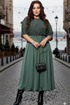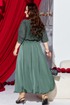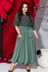 Невероятно красивое и элегантное платье отвечает всем требованиям вечернего наряда! Сочетание тканей разных фактур и дизайнов в одной модели - тренд сезона. Это элегантное платье миди состоит из двух частей, создающих впечатление комплекта. Верхняя часть платья выполнена из плиссированной ткани, что придаёт ему текстурный и динамичный вид, а юбка с атласным блеском придаёт изделию нарядность, гармонично дополняющего верх. Высокая талия юбки визуально удлиняет фигуру. Общий ансамбль выглядит изысканно и подходит как для повседневных, так и для более официальных мероприятий. Сочетание различных фактур и оттенков зелёного создаёт глубокий и сложный образ. Дополнительные детали, такие как золотые украшения и туфли с шипами, придают платью особый шарм. Платье приталенного силуэта, с округлой формой горловины, рукав цельнокроенный, длинной ¾. В плечевом шве платья декоративная вставка рюши. Лиф платья на подкладке. Пояс в платье притачной со вставкой резинки по спинке, с застроченными складками от пояса по юбке платья. Юбка в платье «балон», на подкладке. Пояс в платье декорирован бантом в виде съемной броши. Длина платья 134 см (р 50-54), 135 см (р 56-60). Длин рукава 40 см.